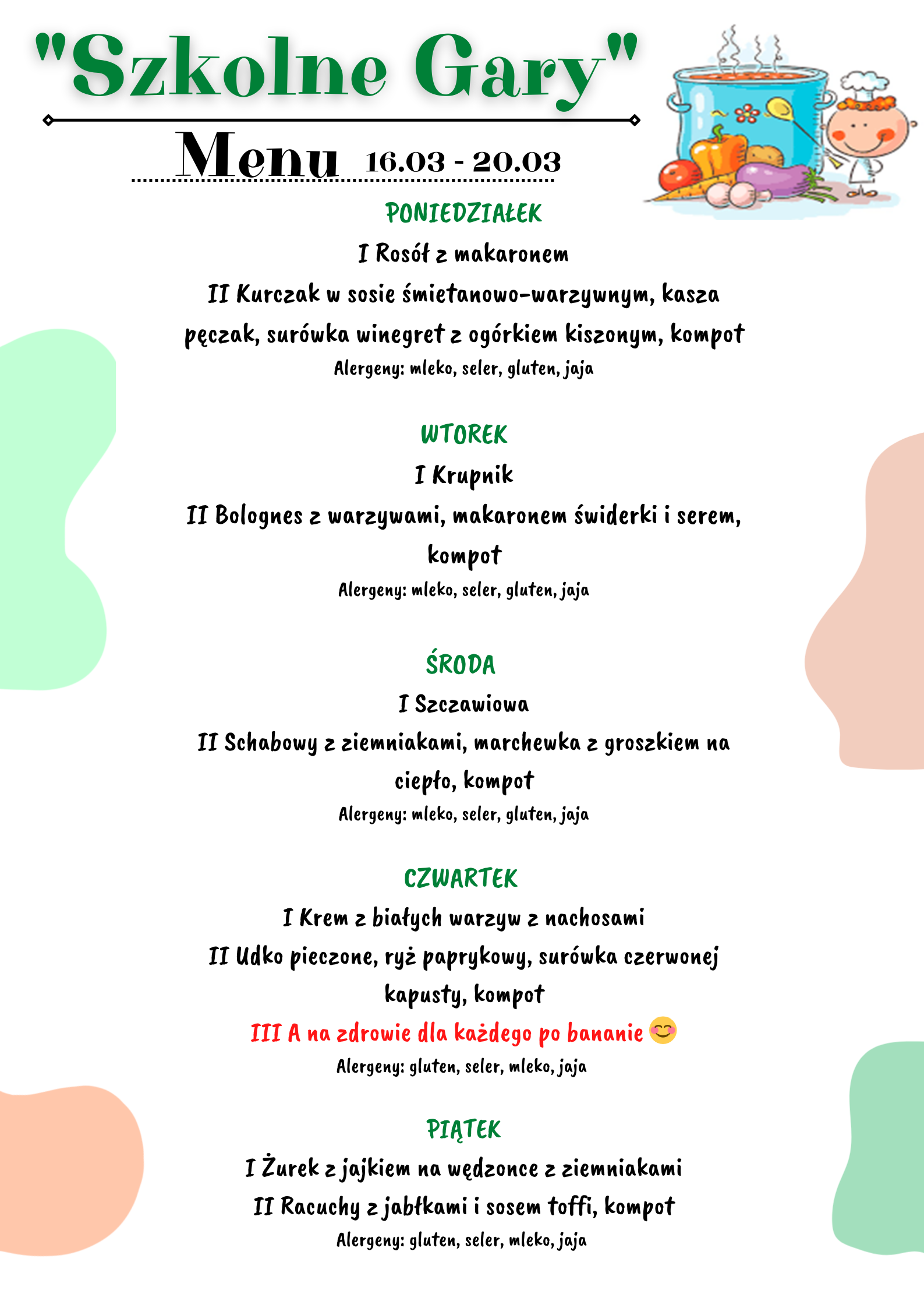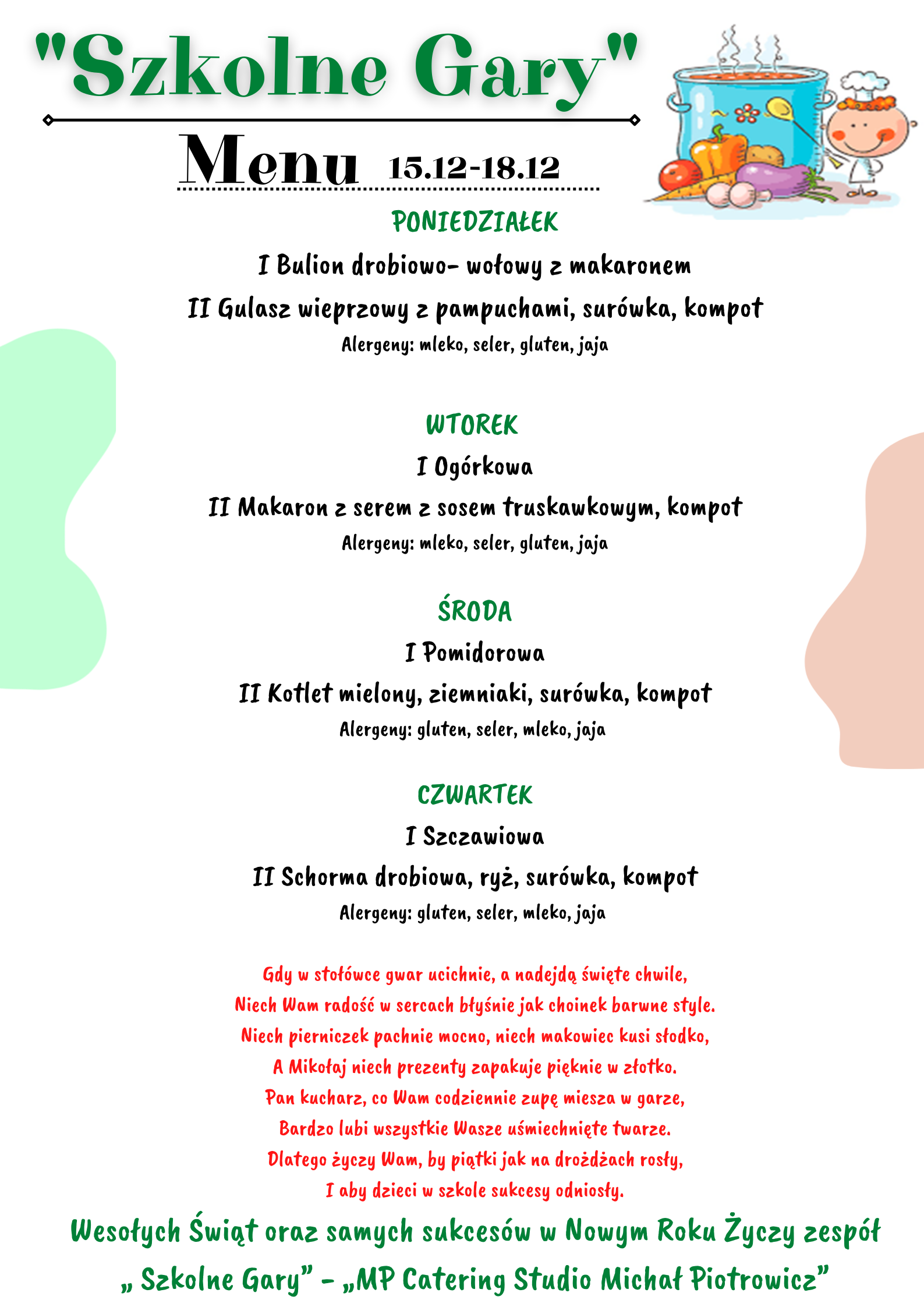 Od nowego roku szkolnego nastąpiła zmiana ajenta kuchni i obiady będą przygotowywane na miejscu.