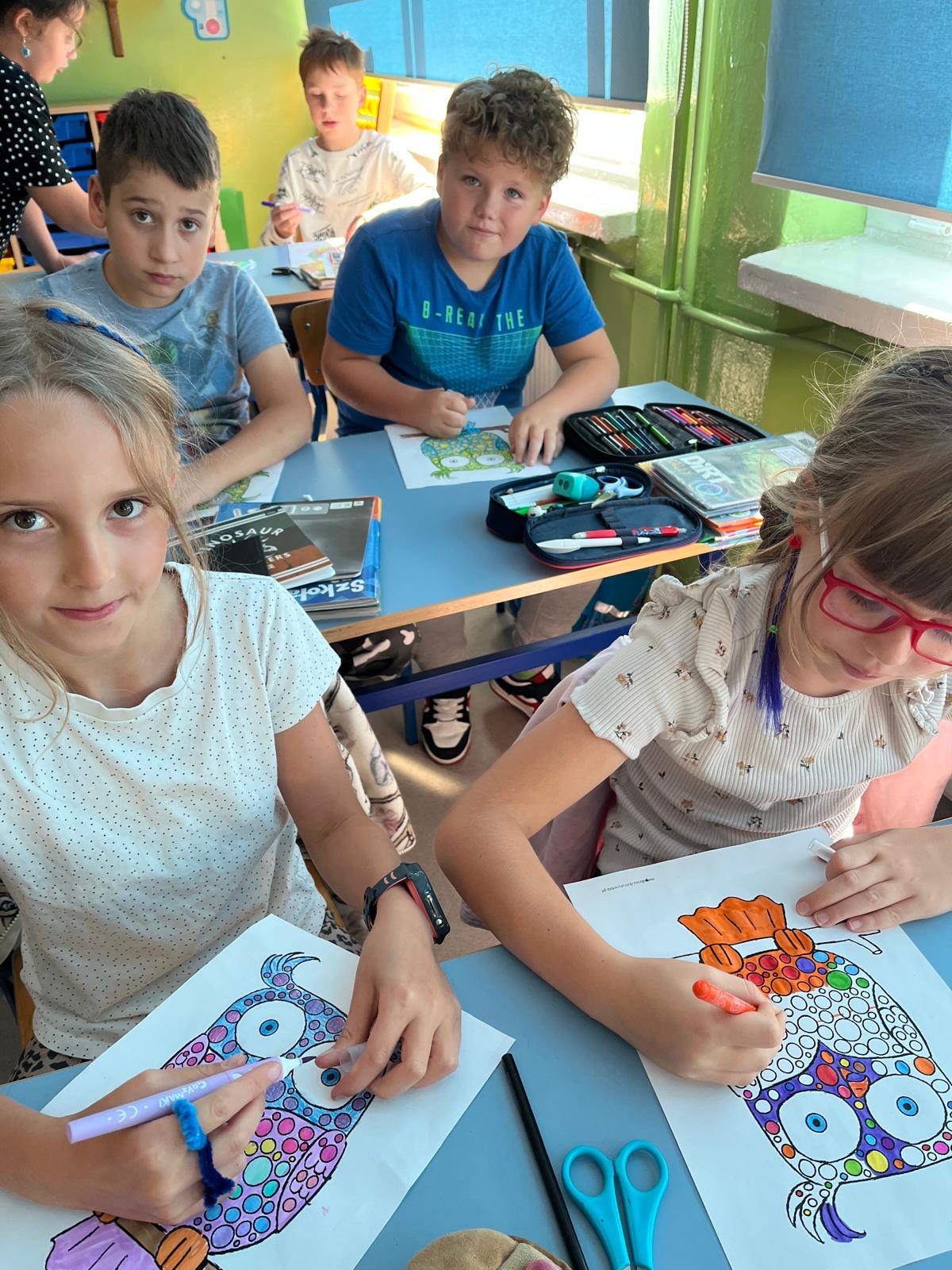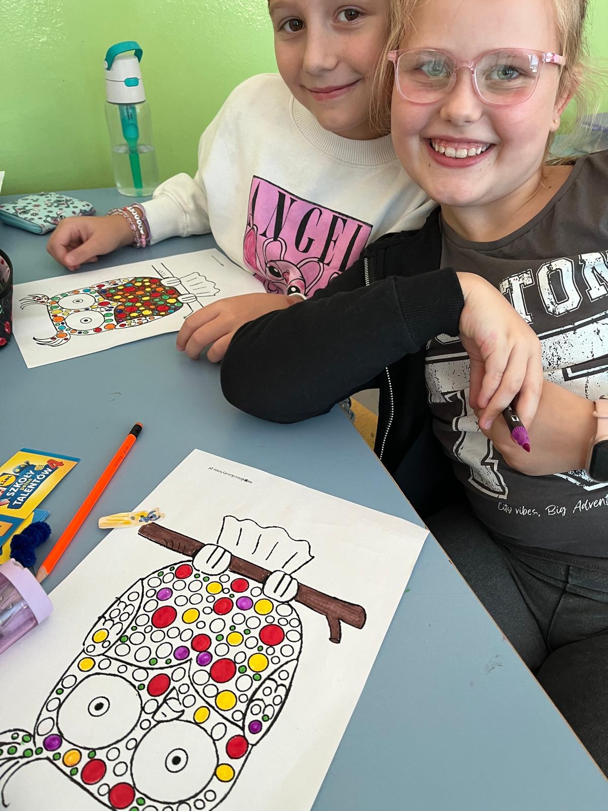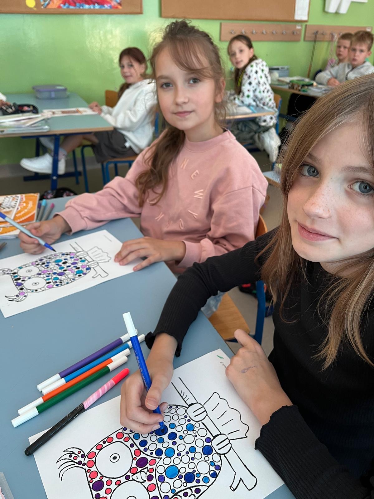 Podczas zajęć dzieci poznały historię Vashti – bohaterki książki „The Dot”, która dzięki małej kropce odkryła swoją twórczą moc. Uczniowie uczestniczyli w różnorodnych aktywnościach plastycznych i zabawach integracyjnych, a sala lekcyjna wypełniła się kolorowymi kropkami w najróżniejszych formach.