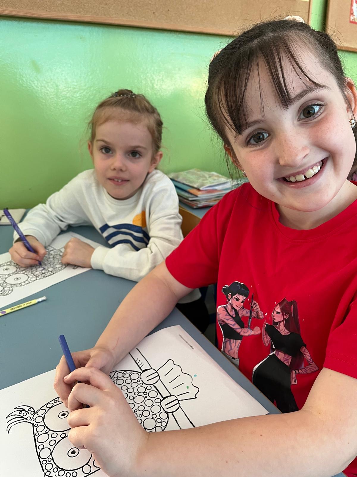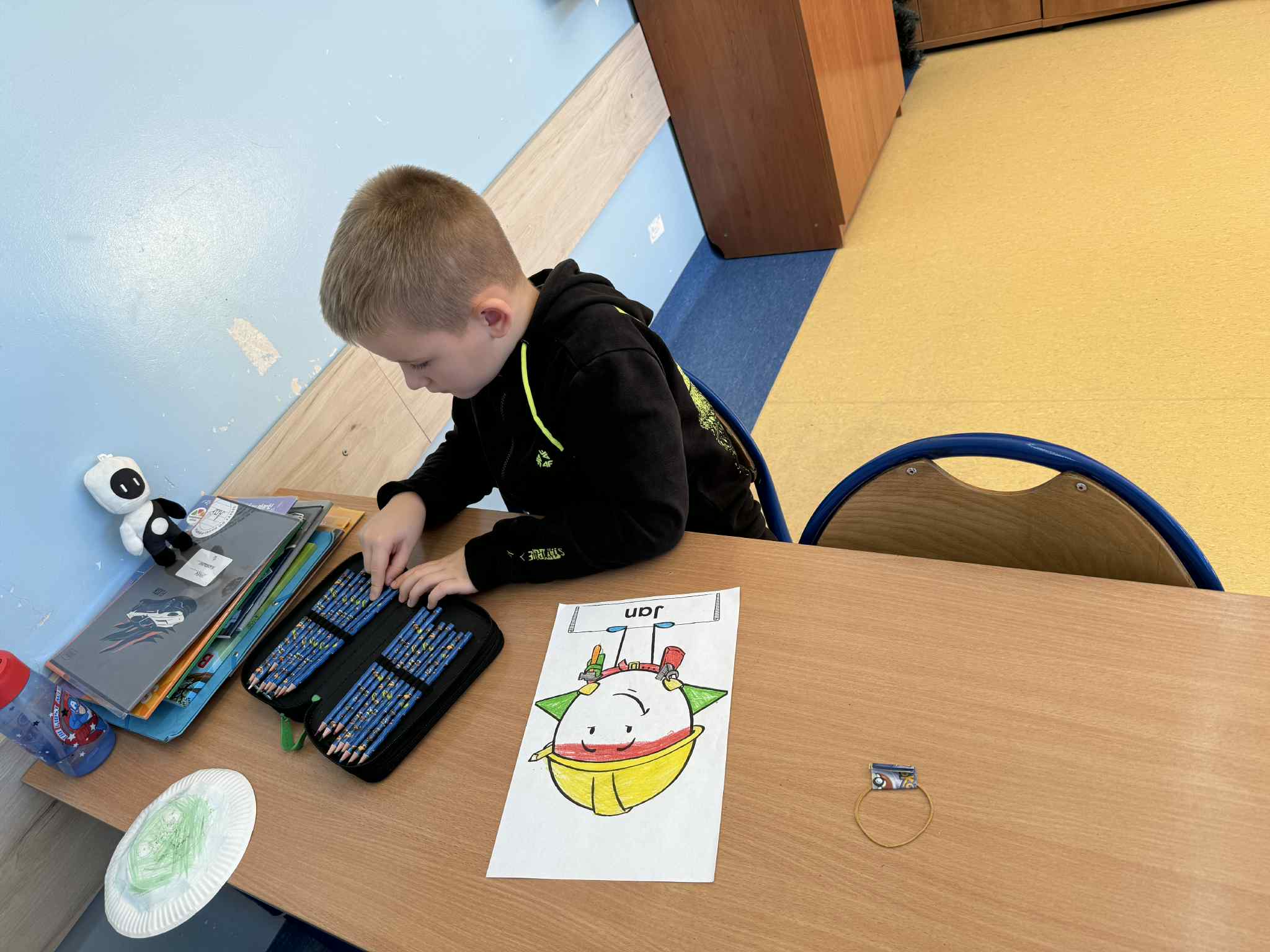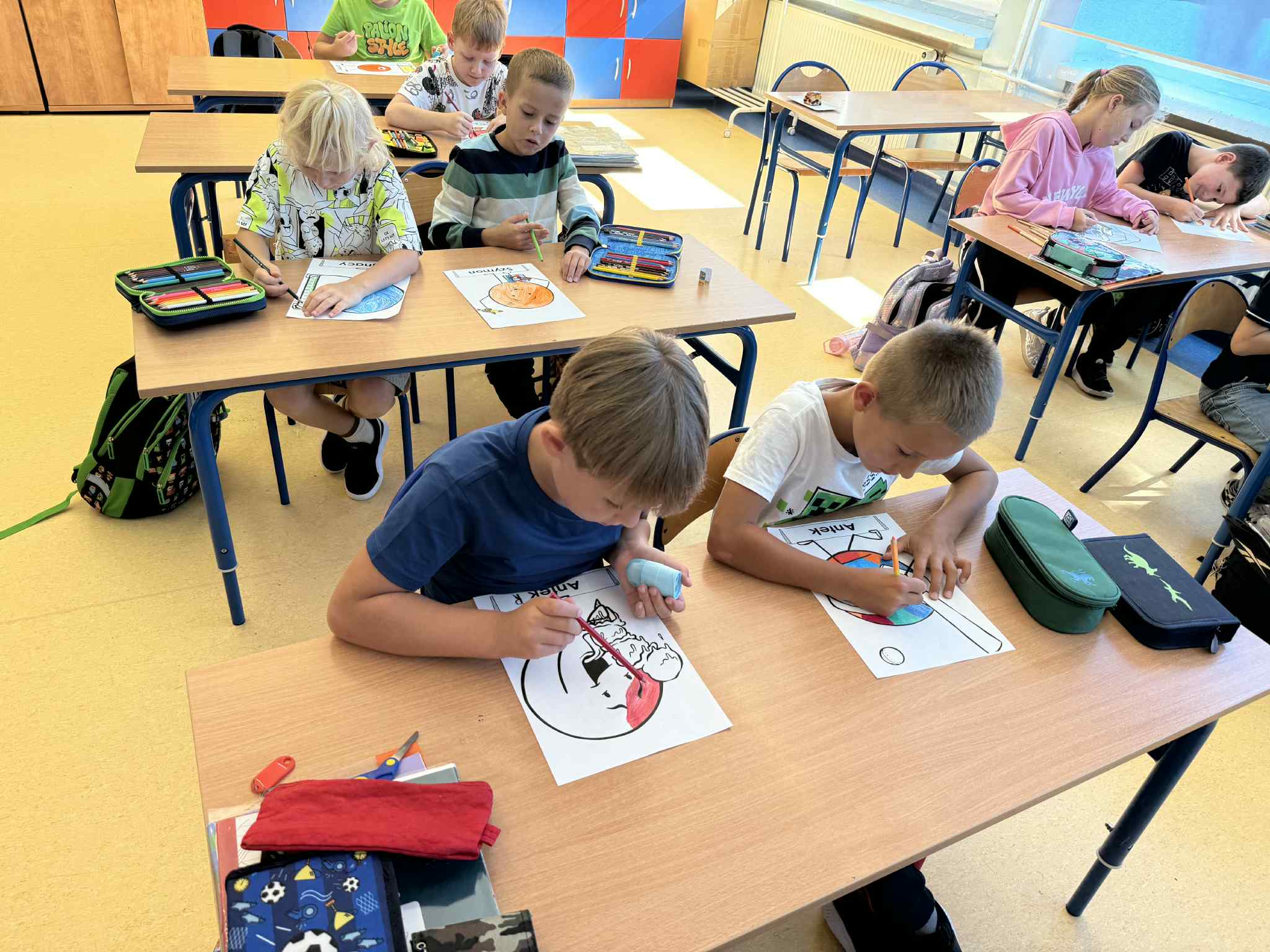 Podczas zajęć dzieci poznały historię Vashti – bohaterki książki „The Dot”, która dzięki małej kropce odkryła swoją twórczą moc. Uczniowie uczestniczyli w różnorodnych aktywnościach plastycznych i zabawach integracyjnych, a sala lekcyjna wypełniła się kolorowymi kropkami w najróżniejszych formach.