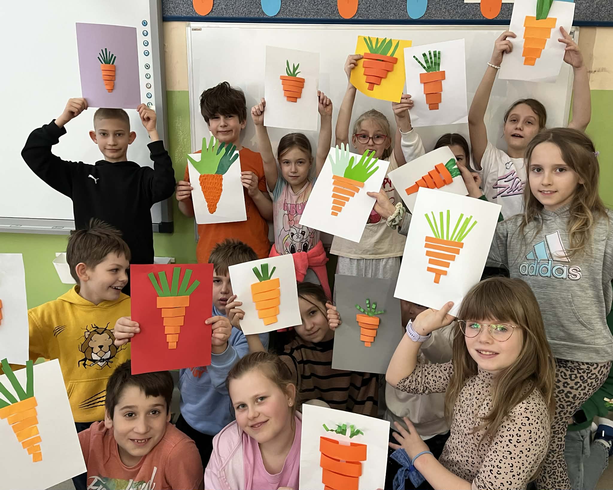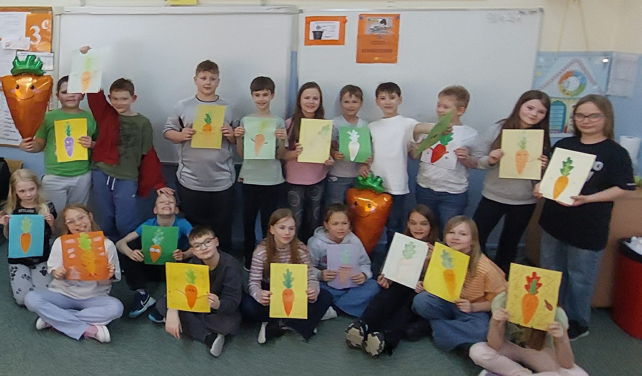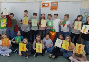 9 kwietnia w klasach 1-3 świętowaliśmy Międzynarodowy Dzień Marchewki. Podczas zajęć uczniowie poszerzyli swoją wiedzę dotycząca wartości odżywczych tego bogatego źródła witamin i minerałów wspierających wzrok, skórę i odporność. Poznali odmiany marchewek oraz ciekawostki o tym warzywie. Wysłuchali piosenki Urodziny Marchewki, rozwiązywali marchewkowe zadania matematyczne, quizy oraz przygotowali prace plastyczne. Sportowcy z kl. 1c i 3 c uczestniczyli w Turnieju Marchewkowym. Na zakończenie uczniowie pili sok marchewkowy.