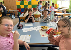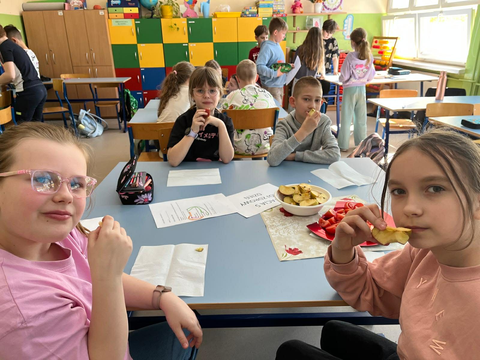 Na uczniów czekało aż pięć tematycznych stacji pełnych ciekawych wyzwań. Na pierwszej z nich - poświęconej zdrowemu odżywianiu - dzieci układały kolorowy talerz zdrowia, poznając zasady komponowania wartościowych posiłków. Dużą atrakcją była również degustacja zdrowych produktów, która zachęciła uczniów do odkrywania nowych smaków.