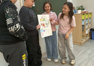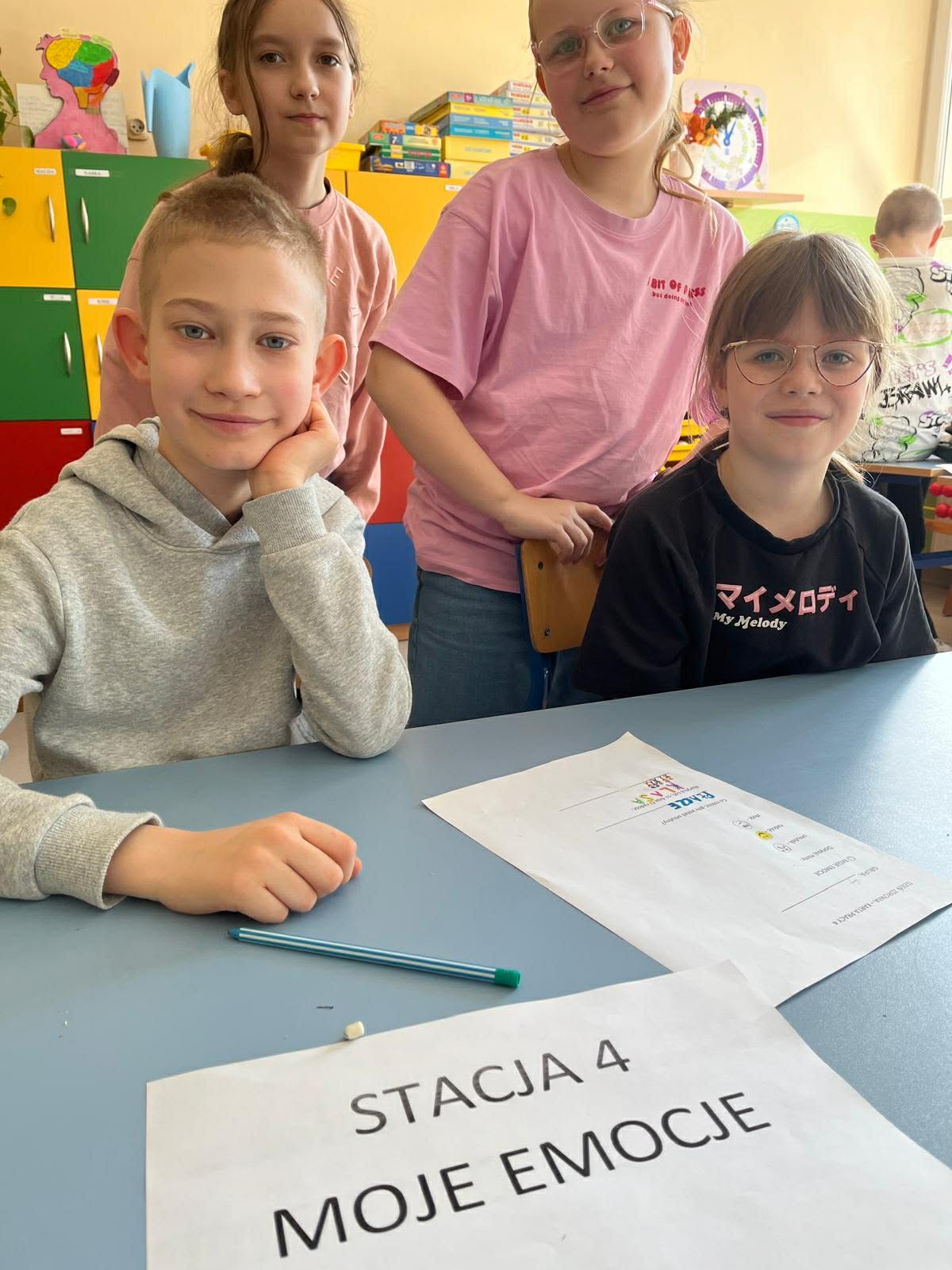 Czwarta stacja była pełna pozytywnych emocji. Dzieci rozmawiały o życzliwości, przyjaźni i sile dobrych słów. Każdy mógł wrzucić karteczkę do koszyka miłych słów, dzieląc się czymś serdecznym z innymi - uśmiechów nie brakowało!