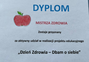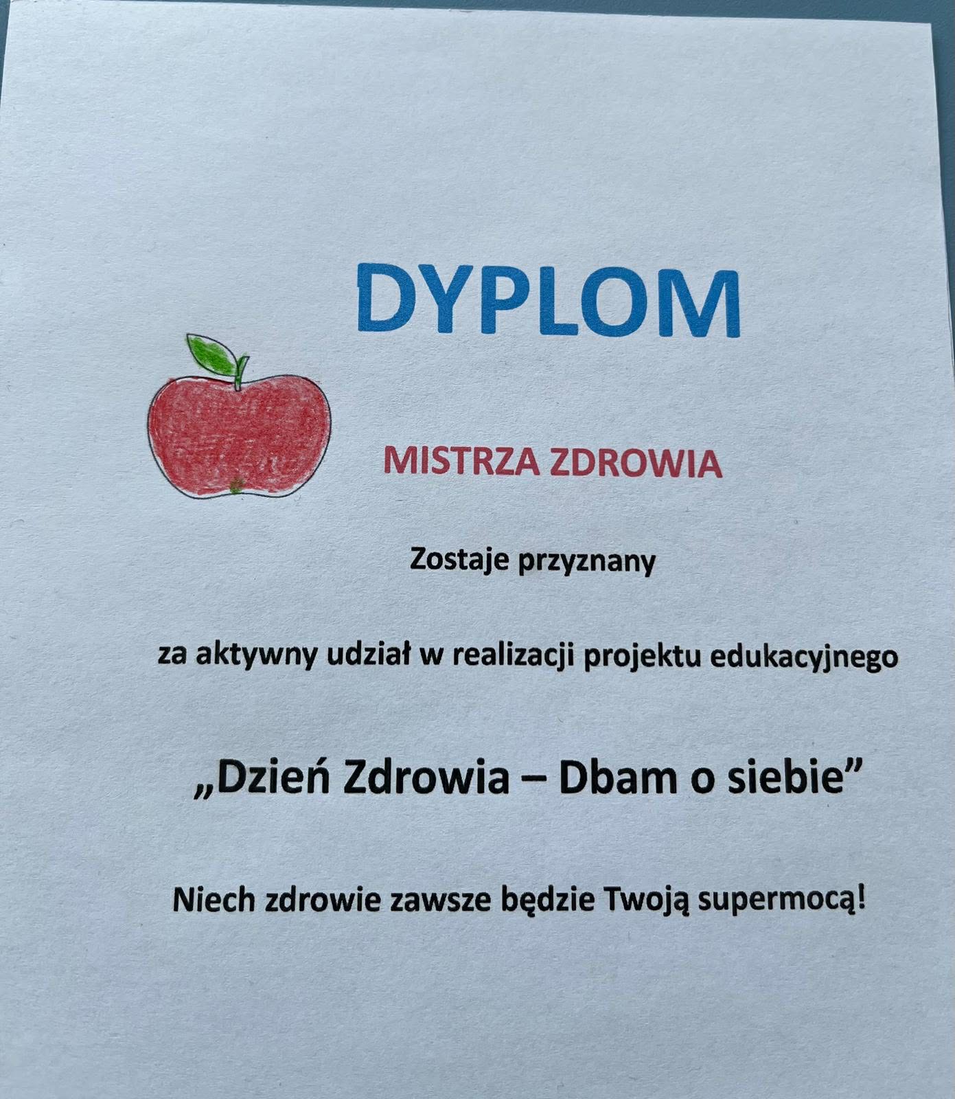 Na zakończenie wszyscy uczestnicy stworzyli barwny plakat pt. Mój sposób na zdrowie, prezentujący najważniejsze zasady dbania o siebie. Każdy uczeń otrzymał także od wychowawcy dyplom Mistrza Zdrowia jako nagrodę za zaangażowanie i aktywny udział.