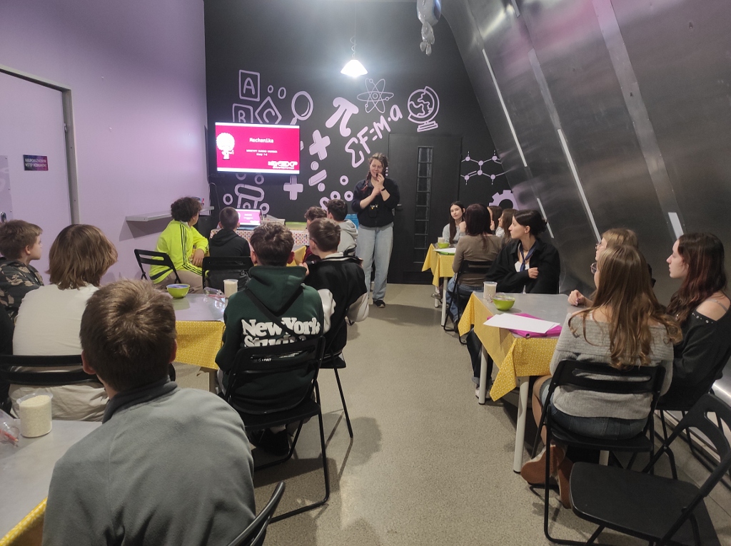 Pod okiem ekspertów wykonywali wiele doświadczeń, m.in. budowali poduszkowiec, odrzutowiec, sprawdzali skutki grawitacji i tarcia. Dynamika, kinematyka, grawitacja, czyli fizyka mechaniczna w praktyce!