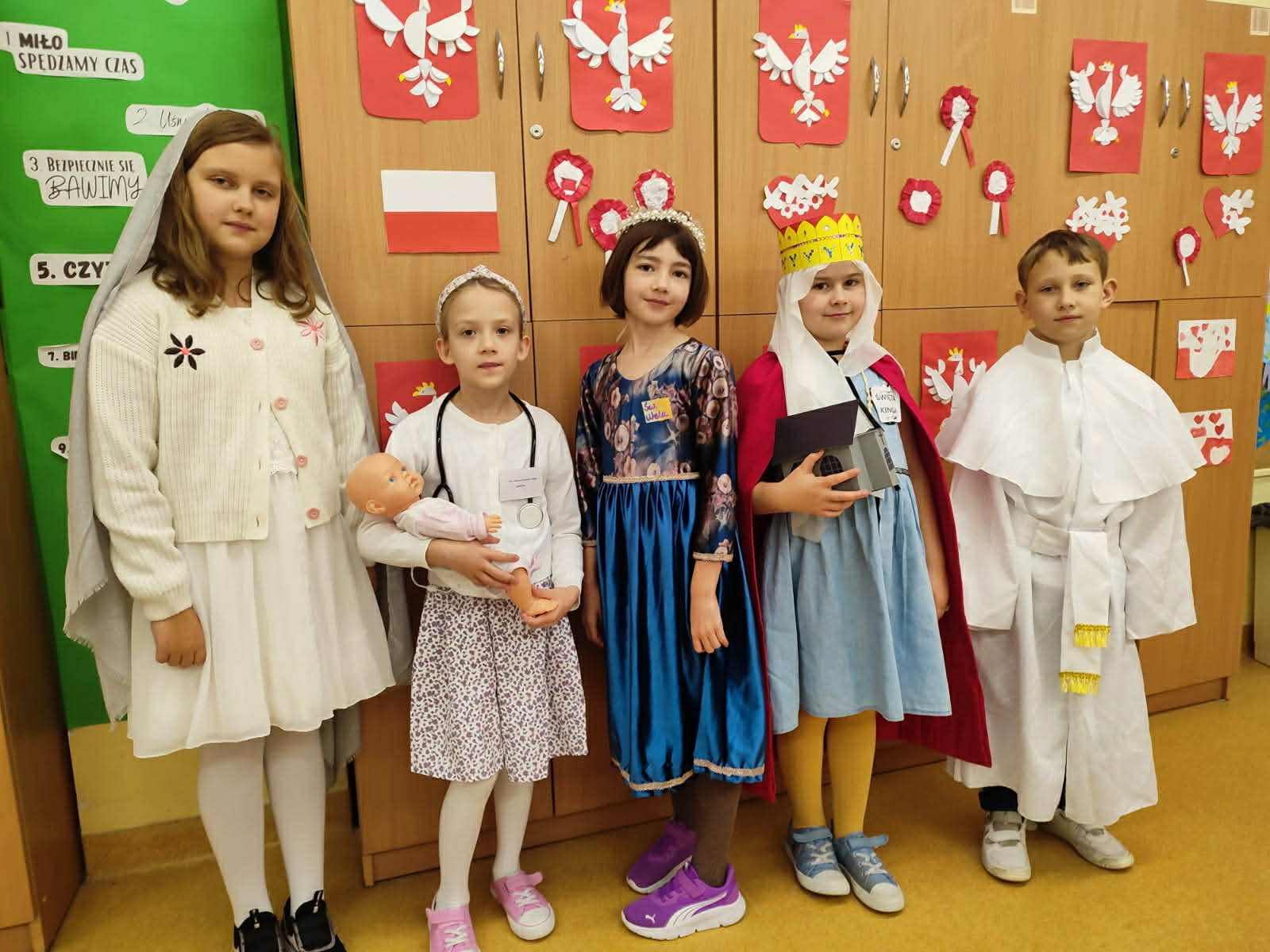 Szczególnie zainteresowali się najmłodsi uczniowie naszej szkoły, którzy z wielką radością i entuzjazmem zaprezentowali stroje świętych.