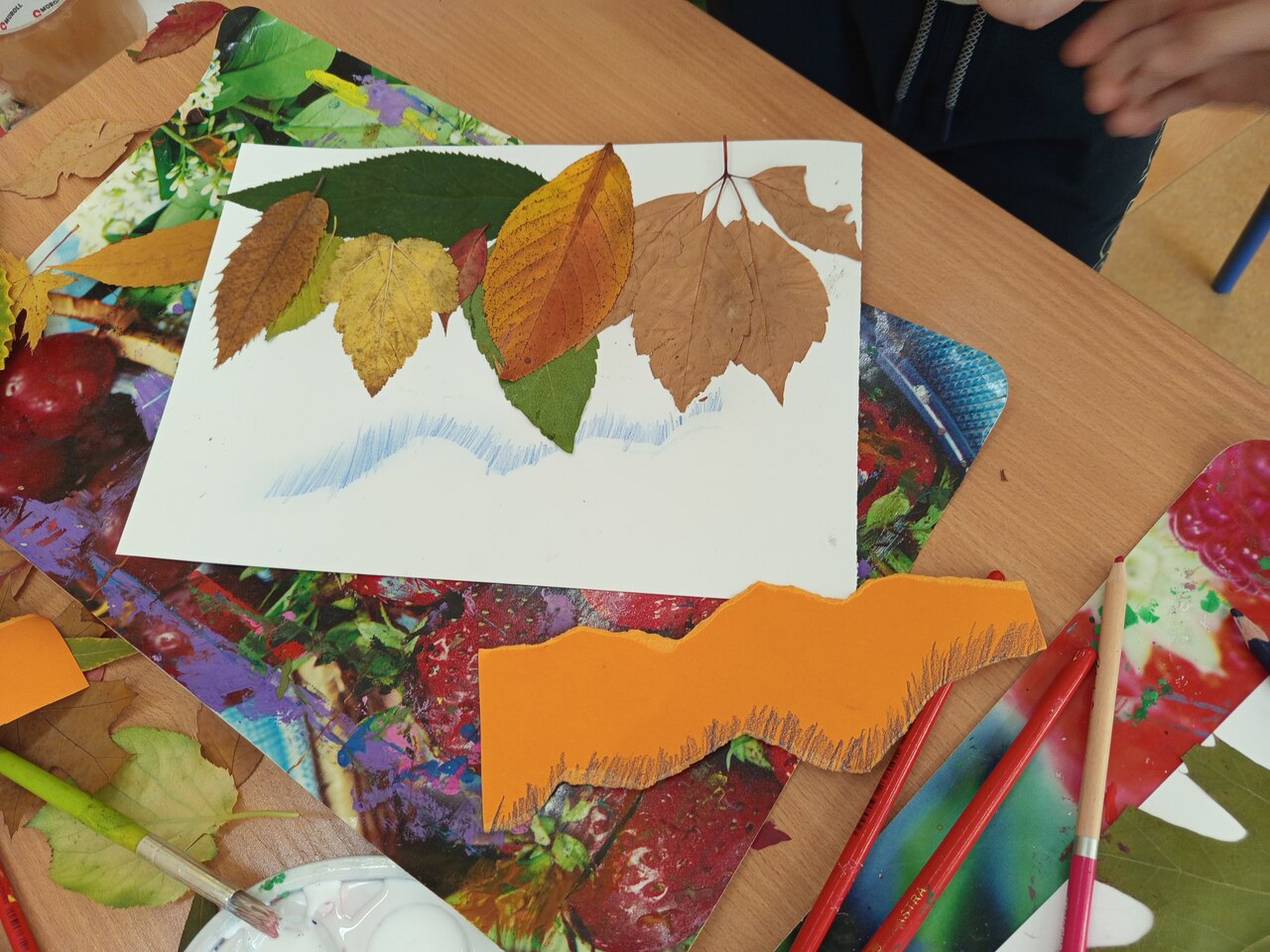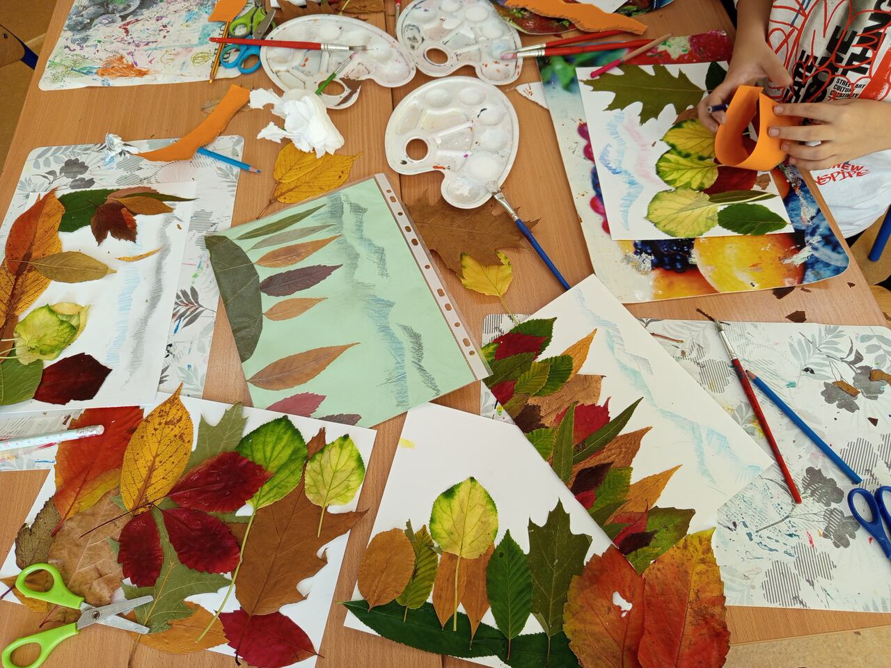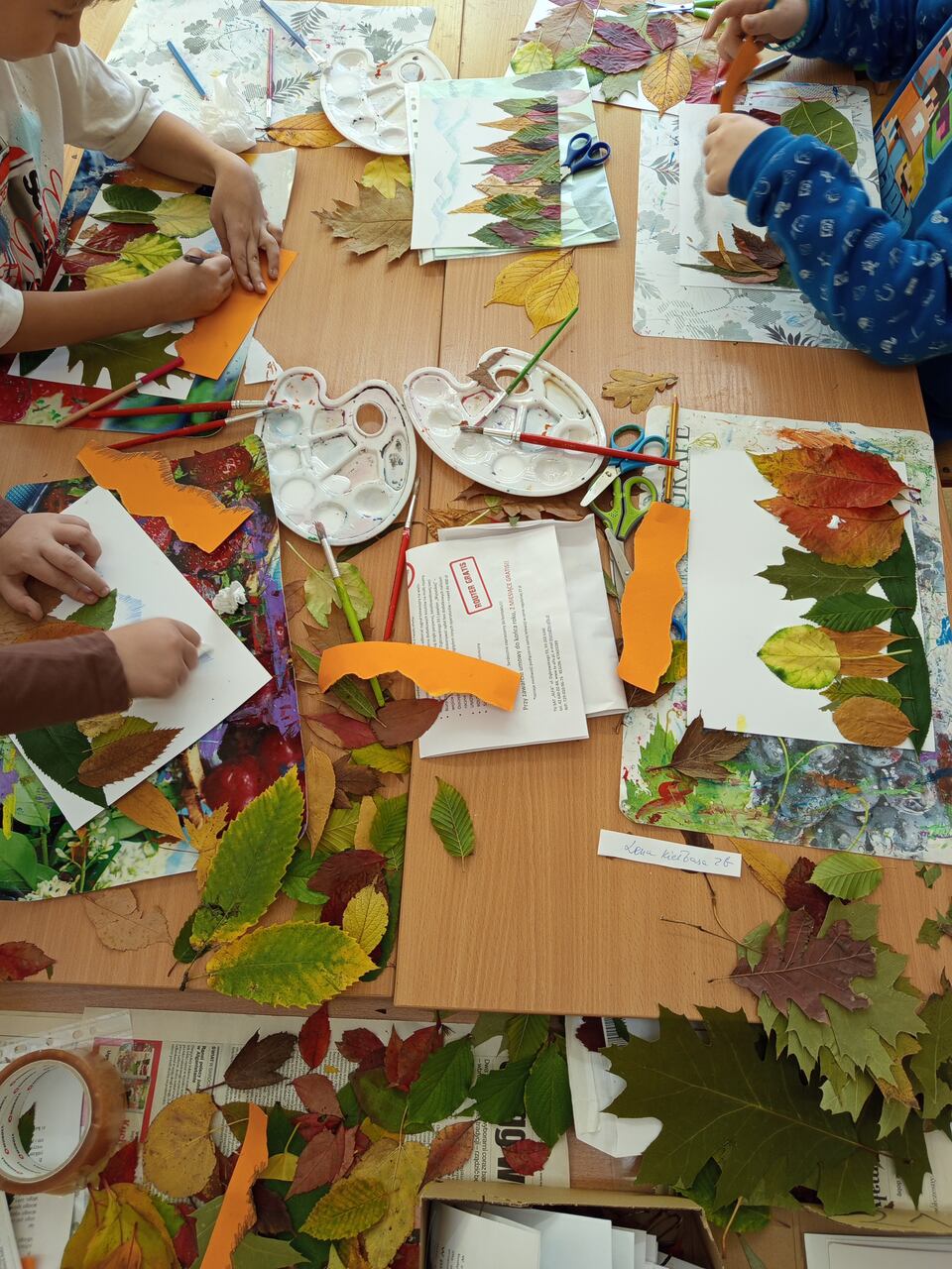 Efekt naszych popołudniowych zajęć: z wysuszonych liści powstał las liściasty. Przy okazji uczyliśmy się rozpoznawać z jakich drzew pochodziły wykorzystane liście.