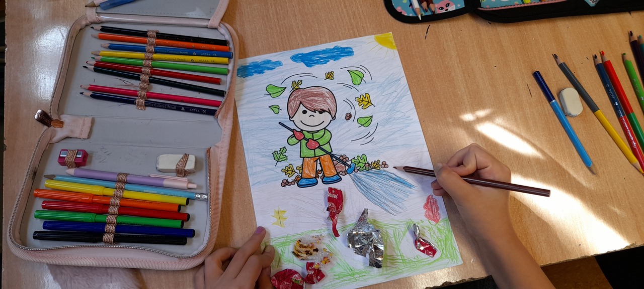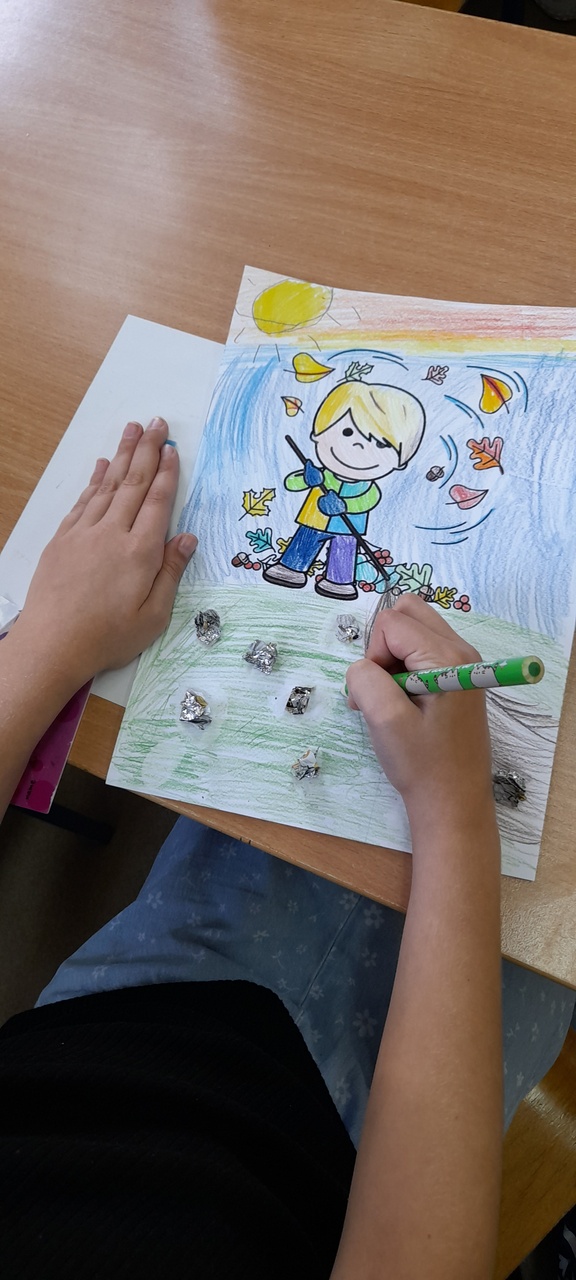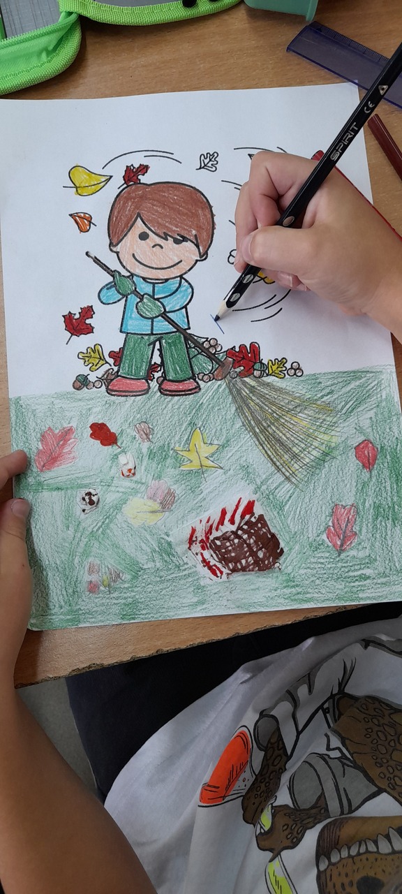 Na świetlicy uczyliśmy się o roli człowieka w ochronie środowiska, sposobach jego ochrony i znaczeniu akcji „Sprzątanie Świata” . Wzięliśmy aktywny udział w sprzątaniu terenu dookoła szkoły, a w klasie wykonaliśmy pracę plastyczną pt. „Moje sprzątanie świata”.