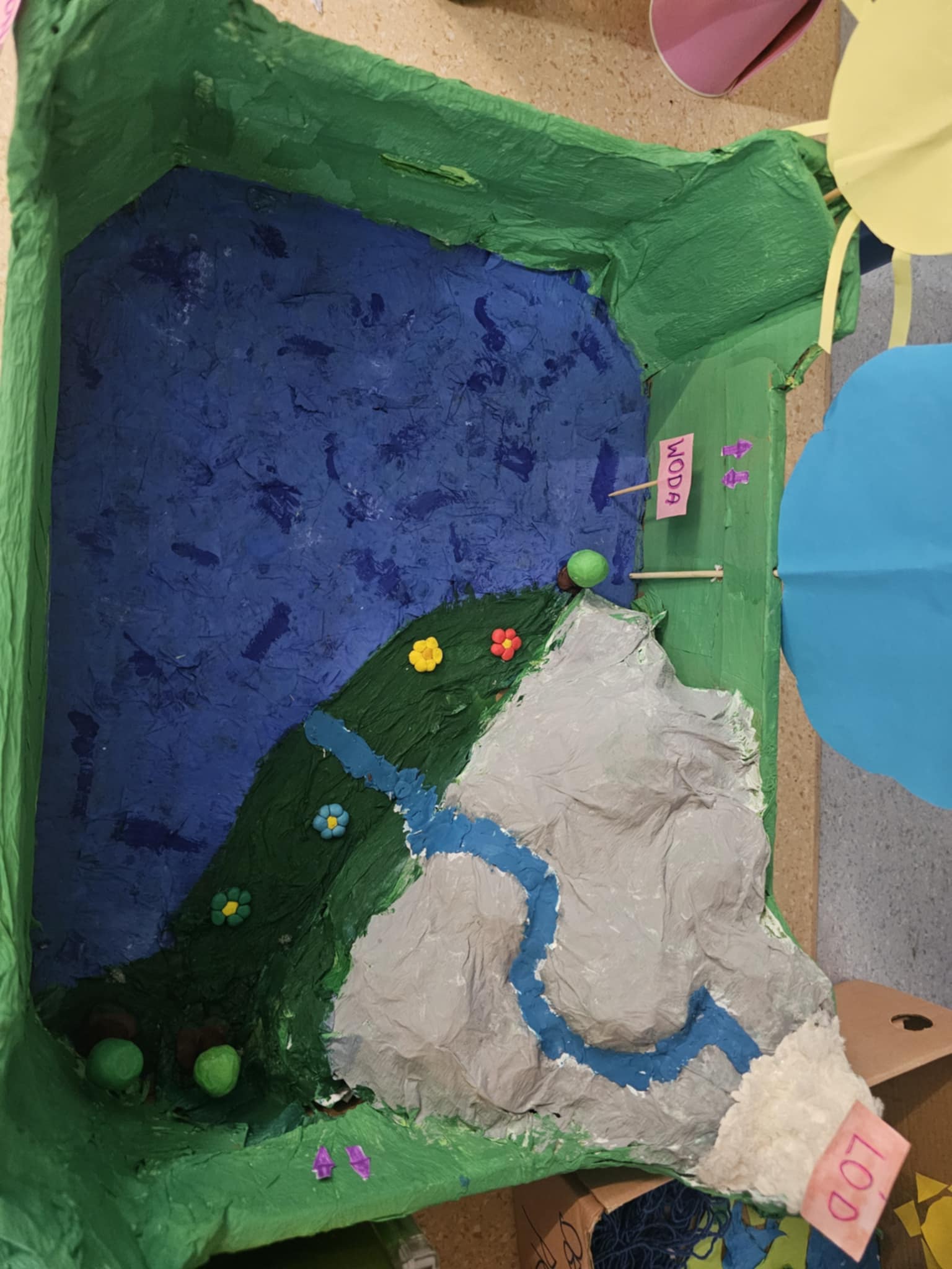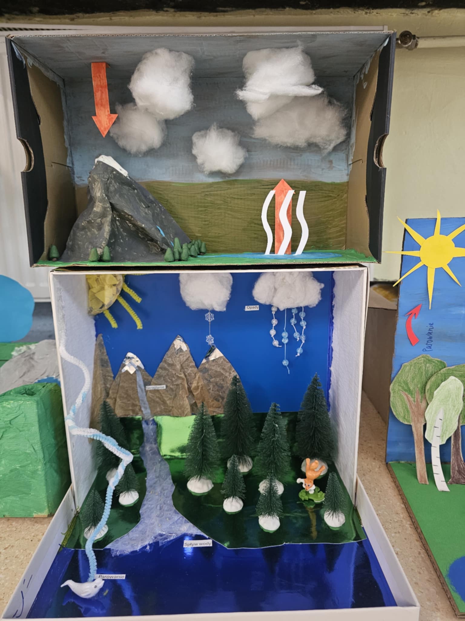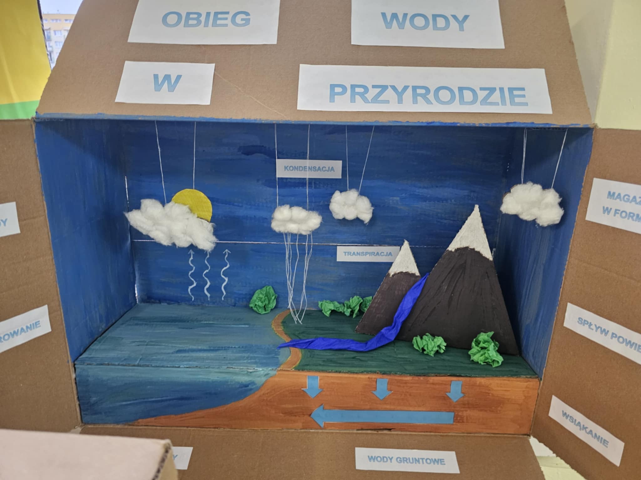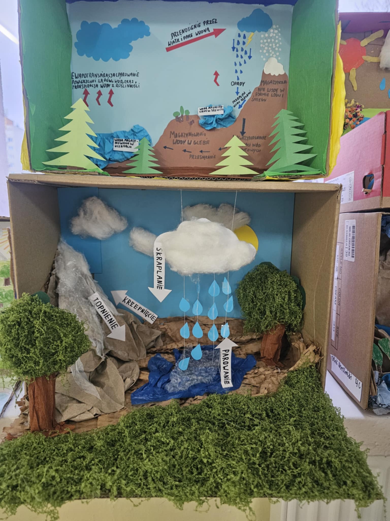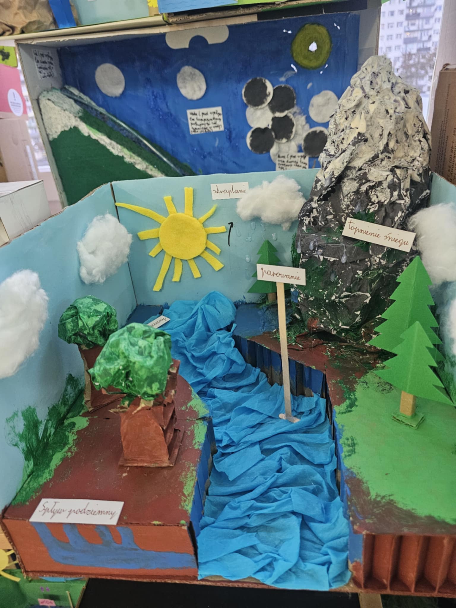 Uczniowie pracowali indywidualnie i w grupach, planując wygląd swoich modeli, omawiając poszczególne etapy cyklu i wspólnie szukając pomysłów na przedstawienie zjawisk przyrodniczych w formie przestrzennej. Powstały makiety były nie tylko efektowne wizualnie, ale również świetnie oddawały przebieg procesów zachodzących w naturze.