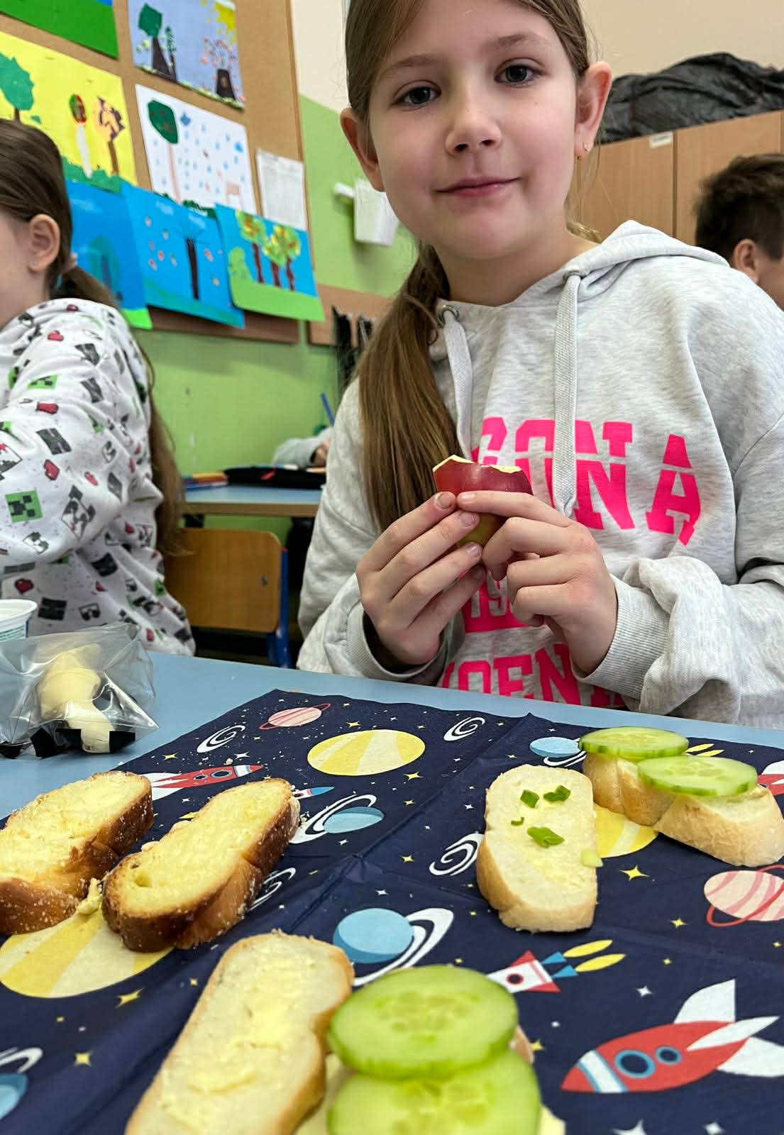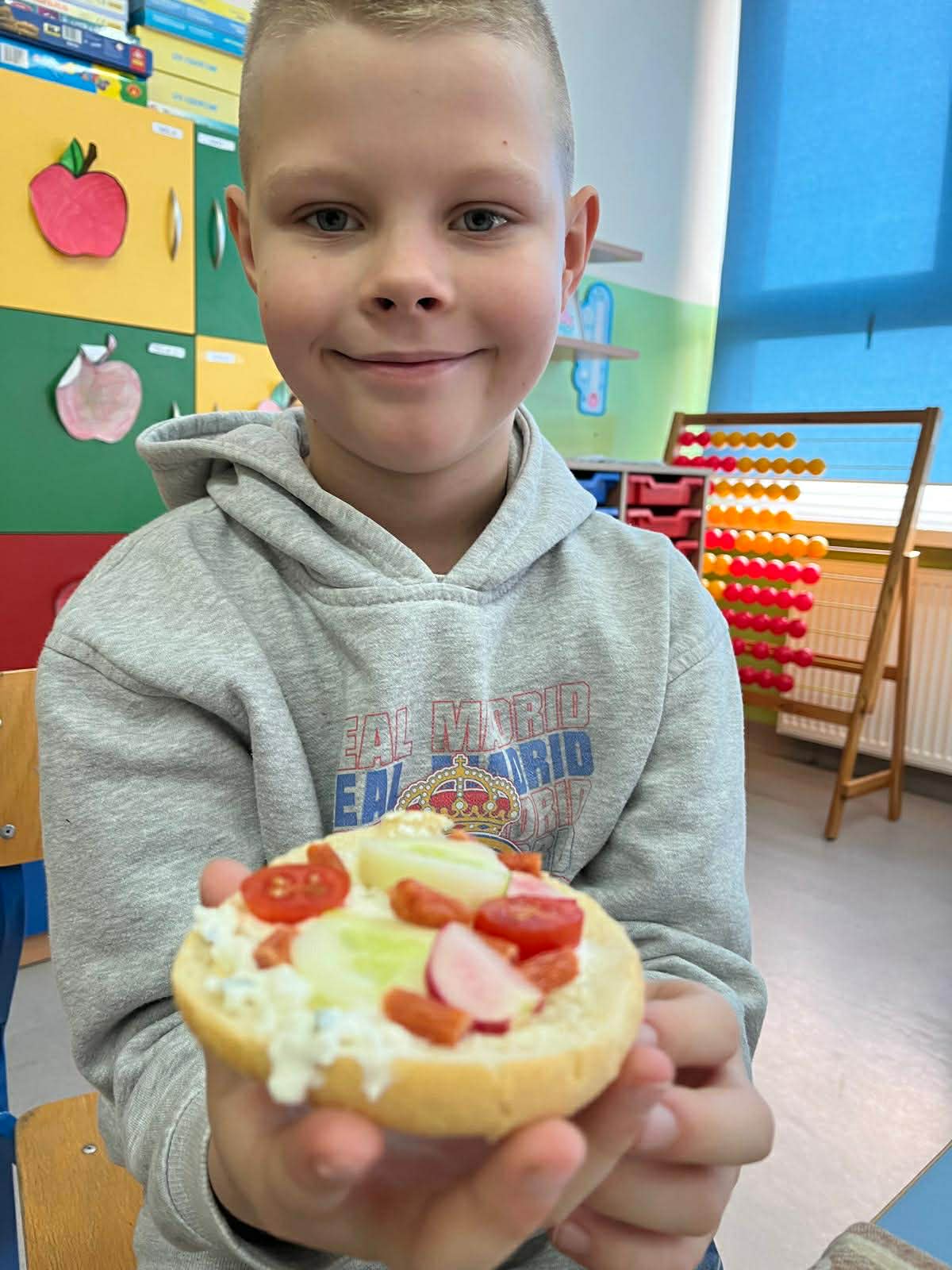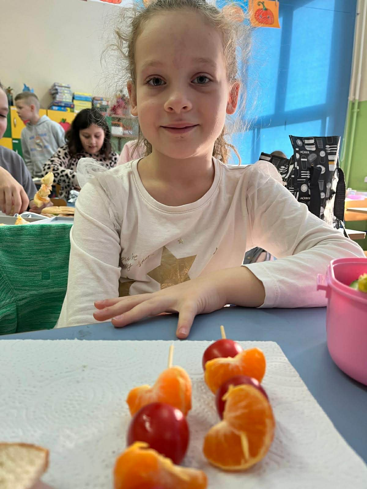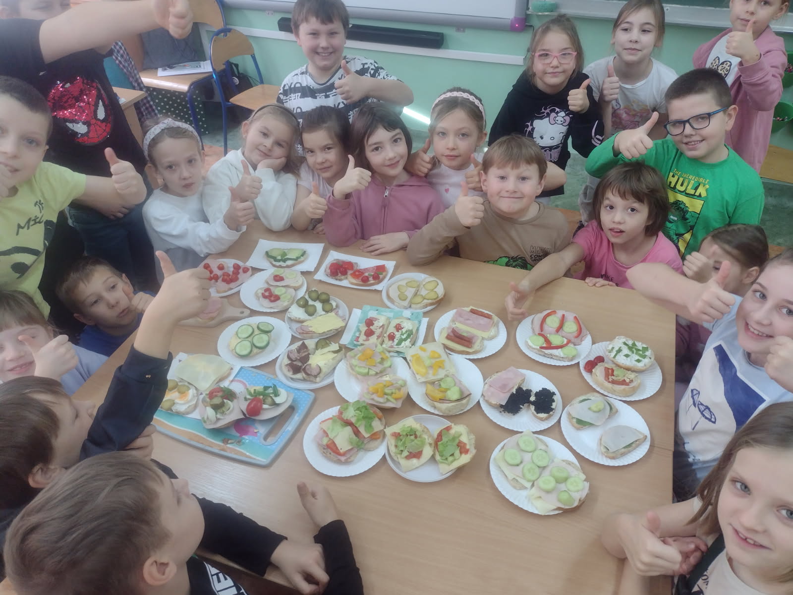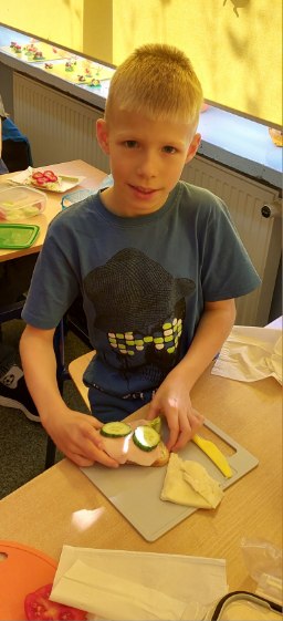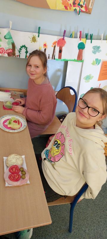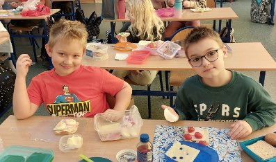 Jak co roku w pierwszym tygodniu listopada uczniowie z klas 1-3 pod kierunkiem wychowawców z ochotą włączyli się do akcji edukacyjnej Śniadanie Daje Moc. Na zajęciach edukacyjnych uczniowie rozmawiali o roli śniadania jako najważniejszego posiłku w ciągu dnia, rozwiązywali quiz wiedzy o zdrowym odżywianiu oraz zagadki słowno-dotykowe Czy wiesz jakie to warzywo?. Następnie dzieci przeszły do zadań praktycznych, czyli wykonania kanapek, owocowych koktajli, sałatek. Wszyscy z apetytem zjedli przygotowane samodzielnie kolorowe, bogate w witaminy drugie śniadanie, pamiętając o zasadach kulturalnego zachowania przy stole. Śniadanie daje moc, nie zapominajmy o nim!