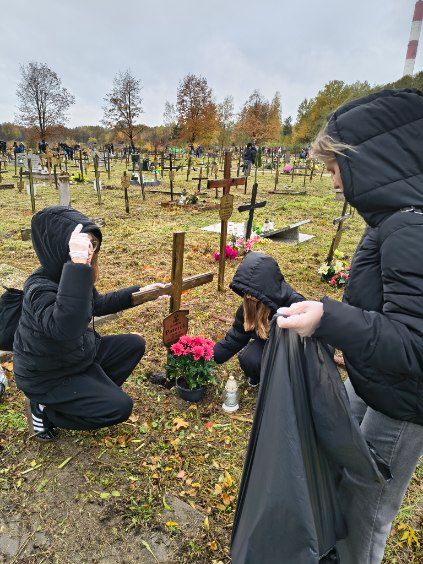 W miarę swoich możliwości wraz z innymi grupami z łódzkich szkół uporządkowaliśmy niektóre groby, osób o których już nikt nie pamiętał. Był też czas na krótką modlitwę oraz zapalenie znicza. Akcja ta nauczyła nas pokory i szacunku wobec życia, które nieustannie przemija.
