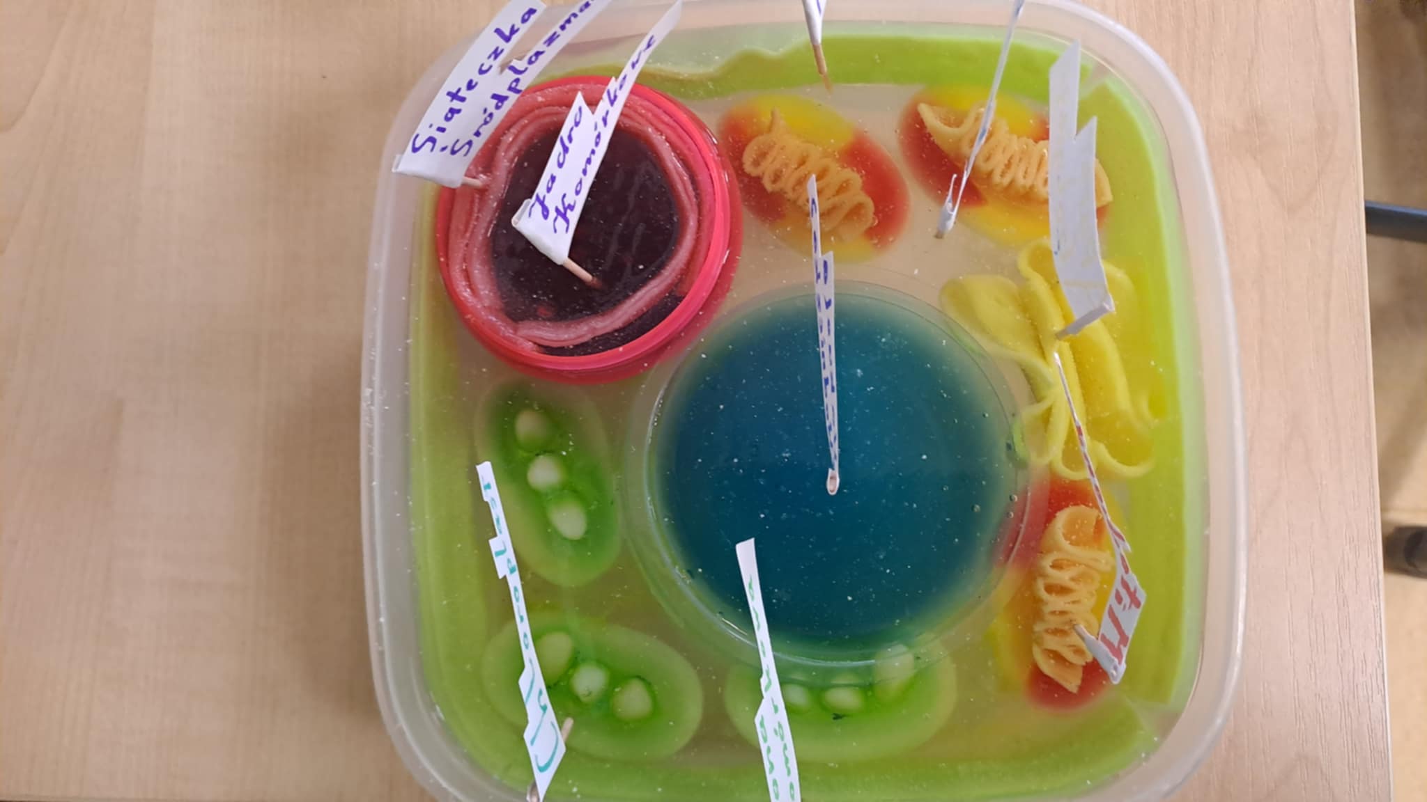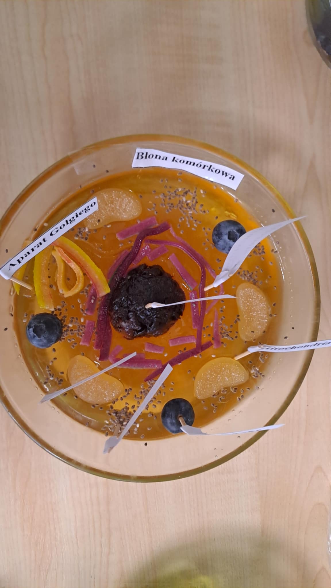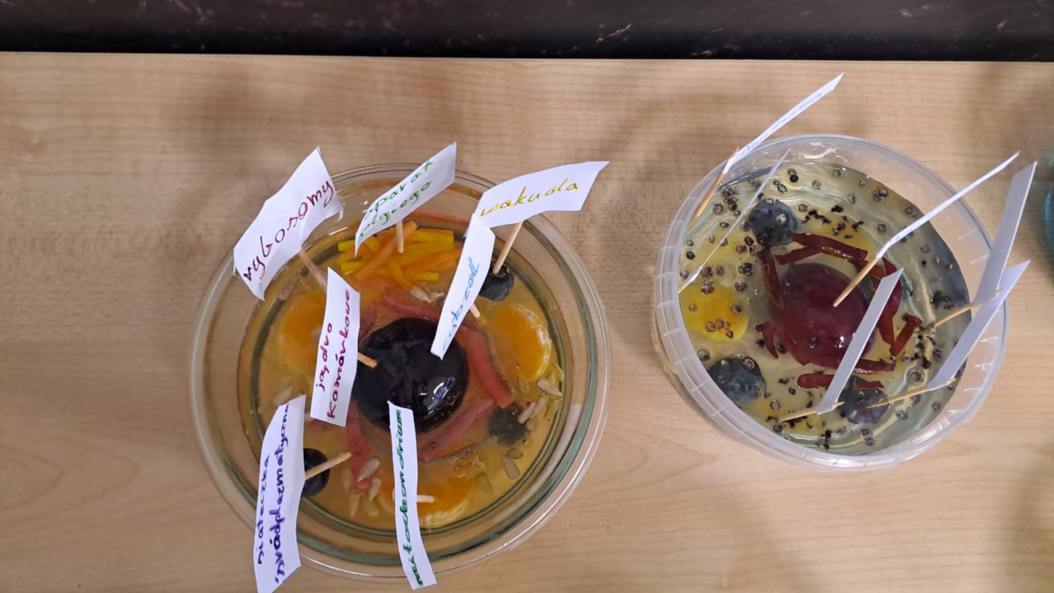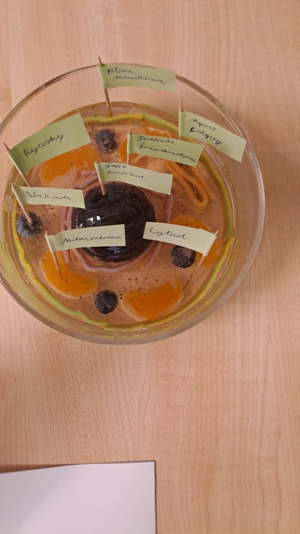 Galaretka stała się cytoplazmą, owoce pełniły rolę organelli, a żelki i pianki odgrywały funkcję struktur komórkowych, których nazwy na co dzień brzmią naprawdę poważnie. Dzięki temu nietypowemu doświadczeniu piątoklasiści nie tylko świetnie się bawili, ale także utrwalili wiedzę o budowie komórki w najbardziej smakowity sposób.