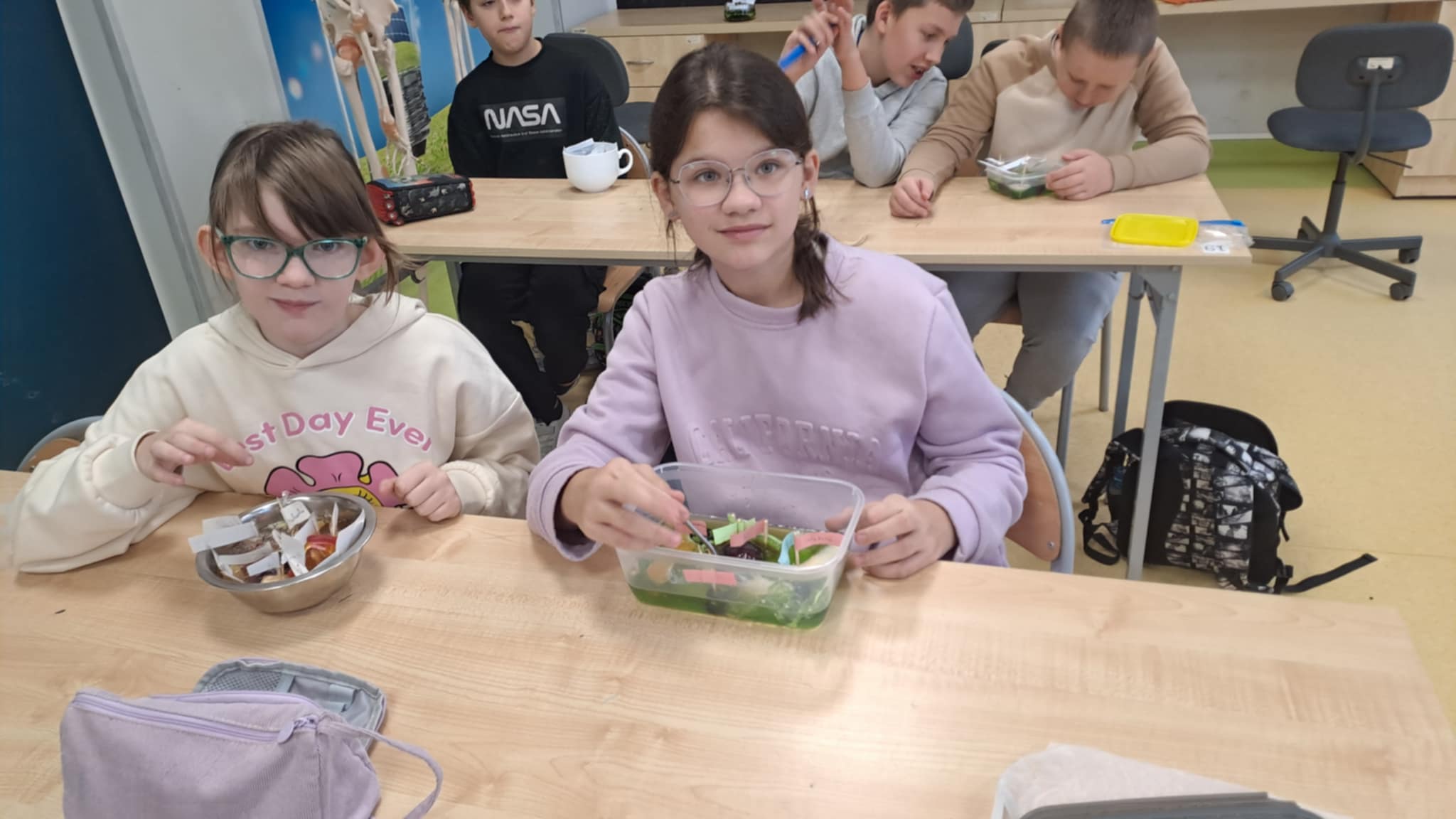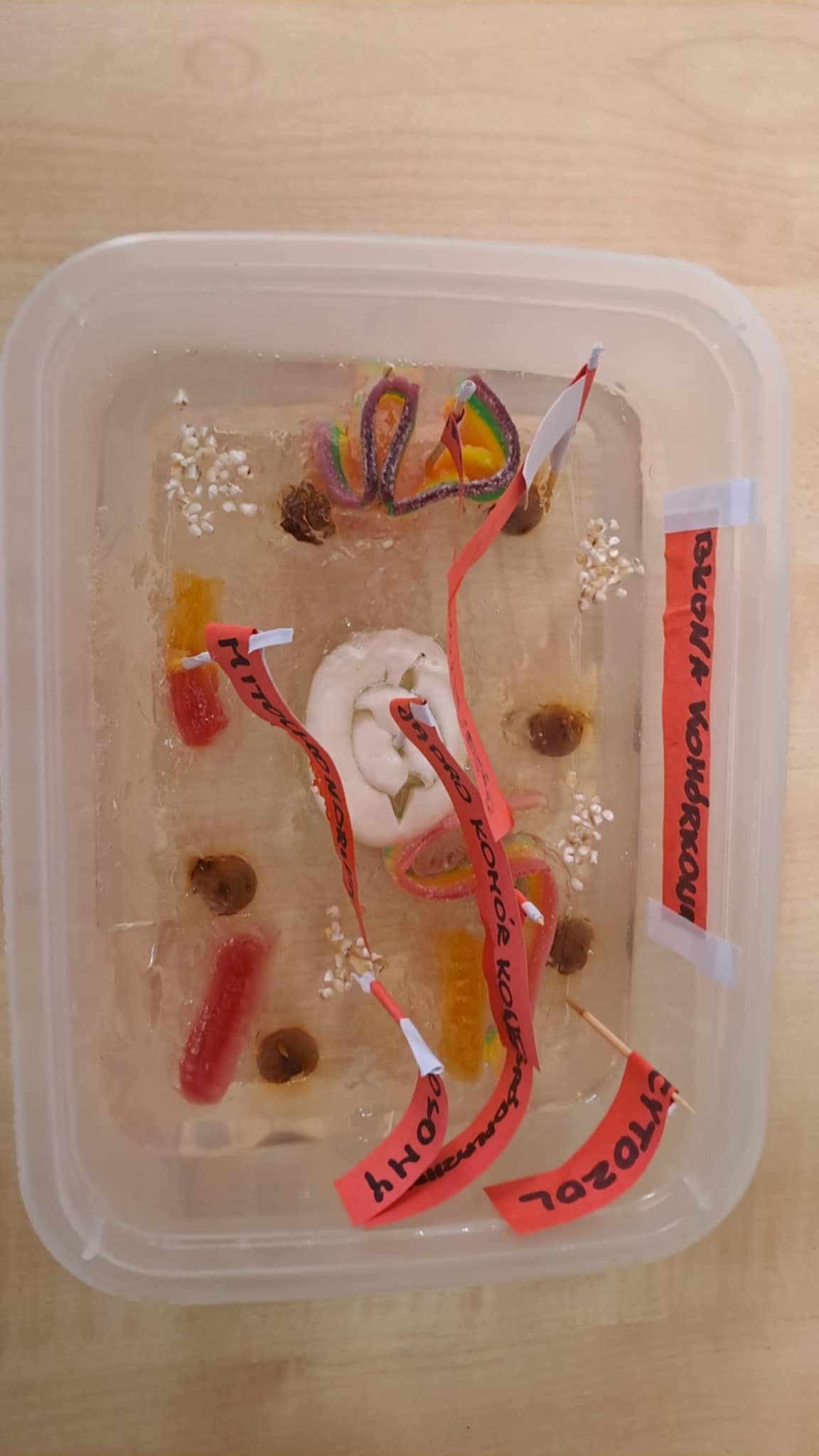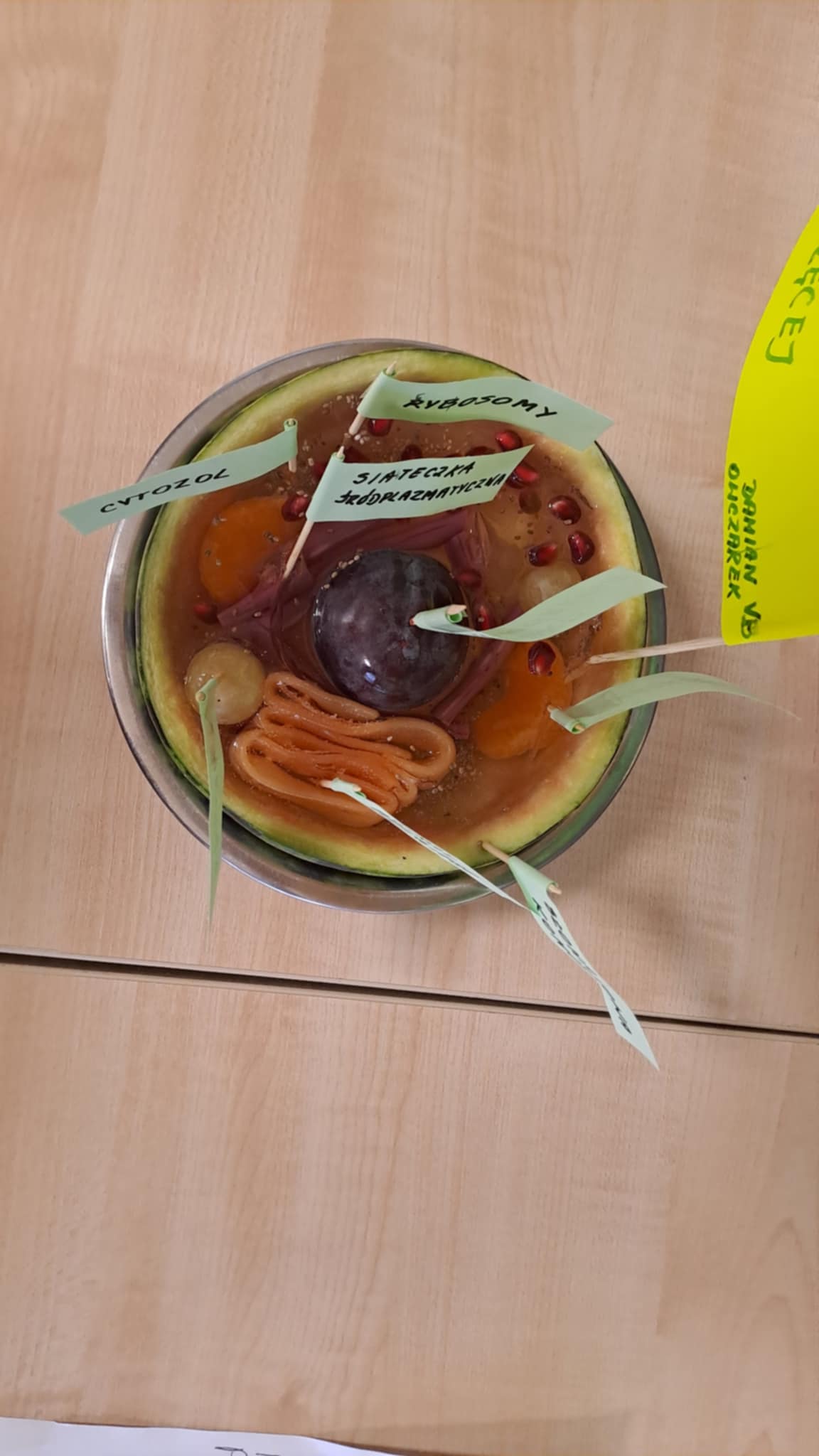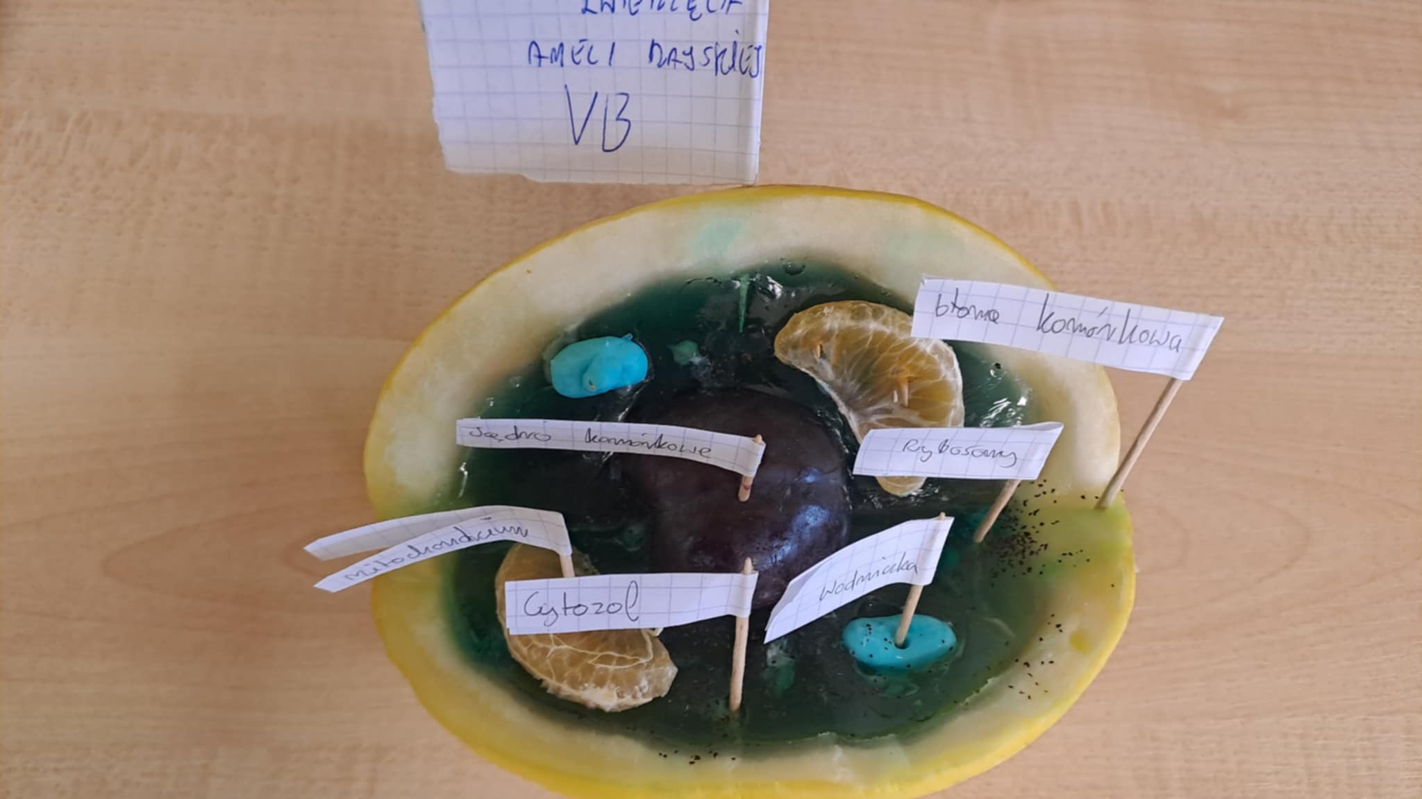 Galaretka stała się cytoplazmą, owoce pełniły rolę organelli, a żelki i pianki odgrywały funkcję struktur komórkowych, których nazwy na co dzień brzmią naprawdę poważnie. Dzięki temu nietypowemu doświadczeniu piątoklasiści nie tylko świetnie się bawili, ale także utrwalili wiedzę o budowie komórki w najbardziej smakowity sposób.