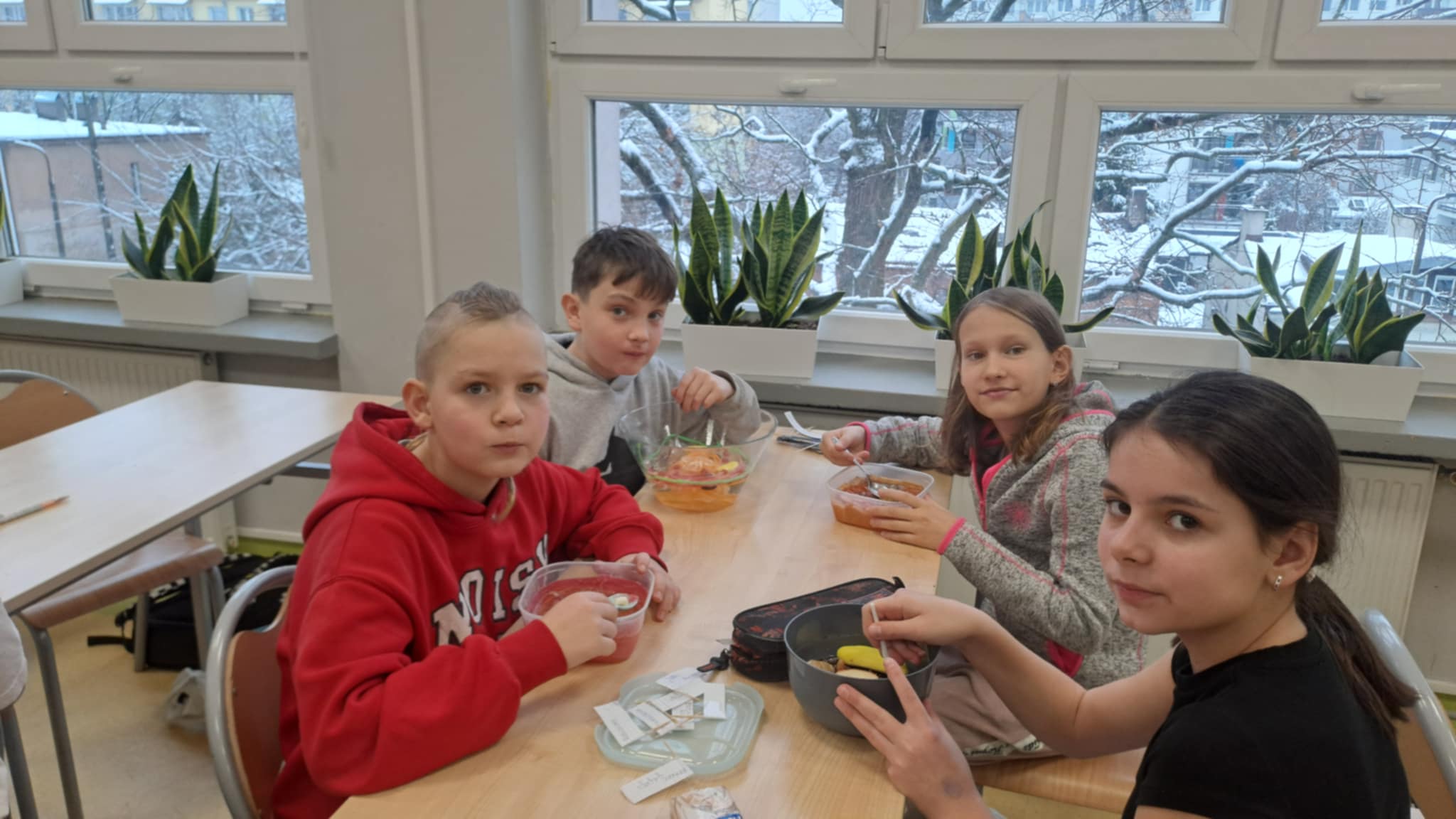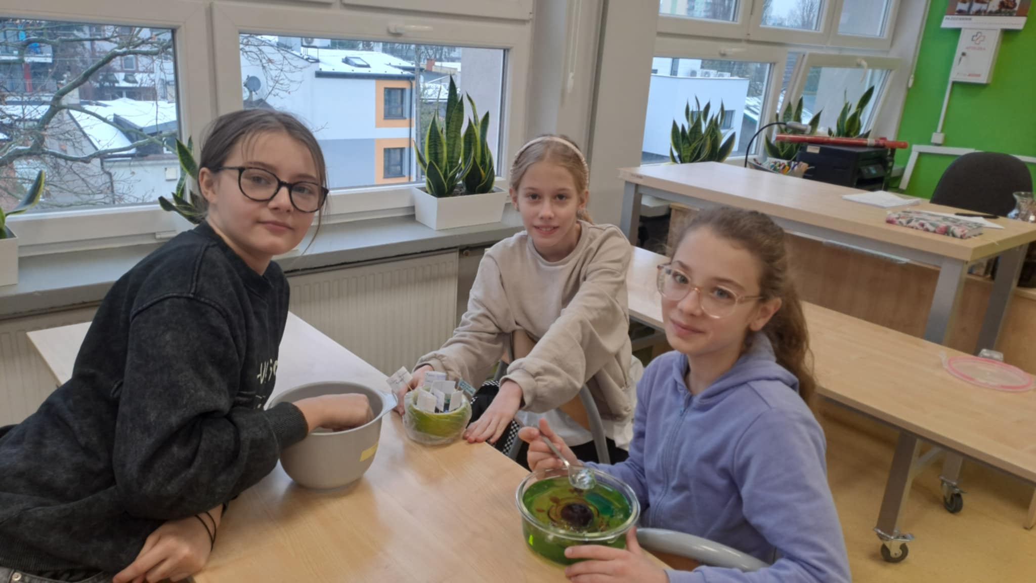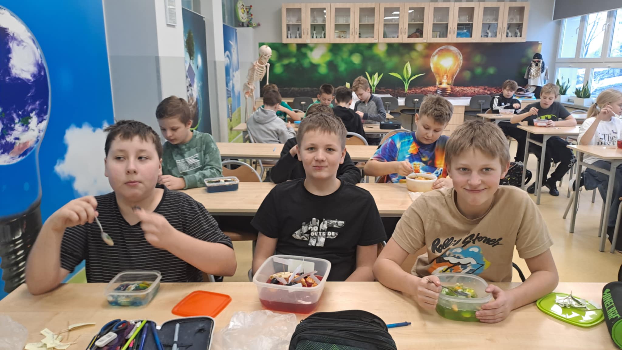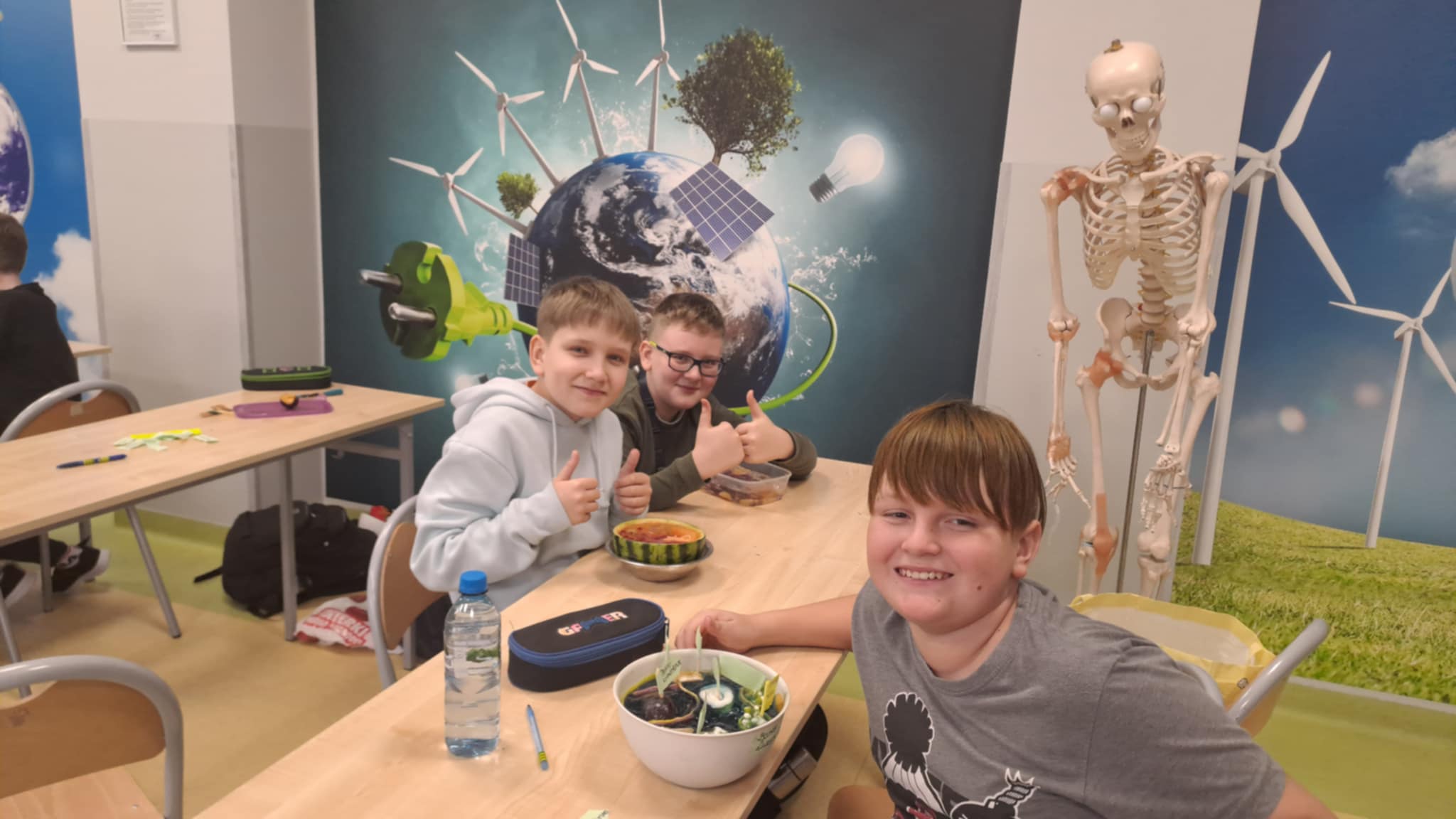 Galaretka stała się cytoplazmą, owoce pełniły rolę organelli, a żelki i pianki odgrywały funkcję struktur komórkowych, których nazwy na co dzień brzmią naprawdę poważnie. Dzięki temu nietypowemu doświadczeniu piątoklasiści nie tylko świetnie się bawili, ale także utrwalili wiedzę o budowie komórki w najbardziej smakowity sposób.