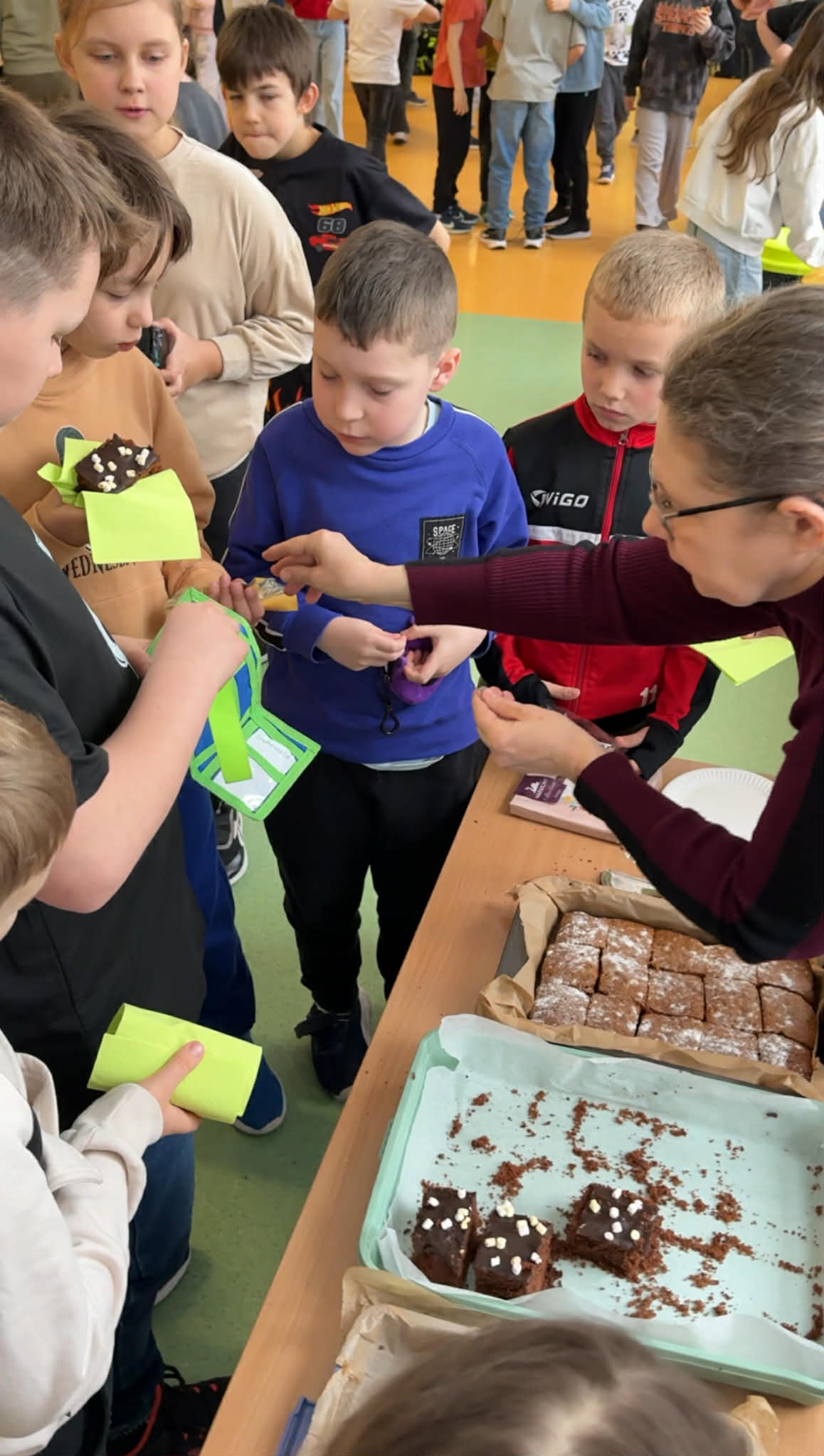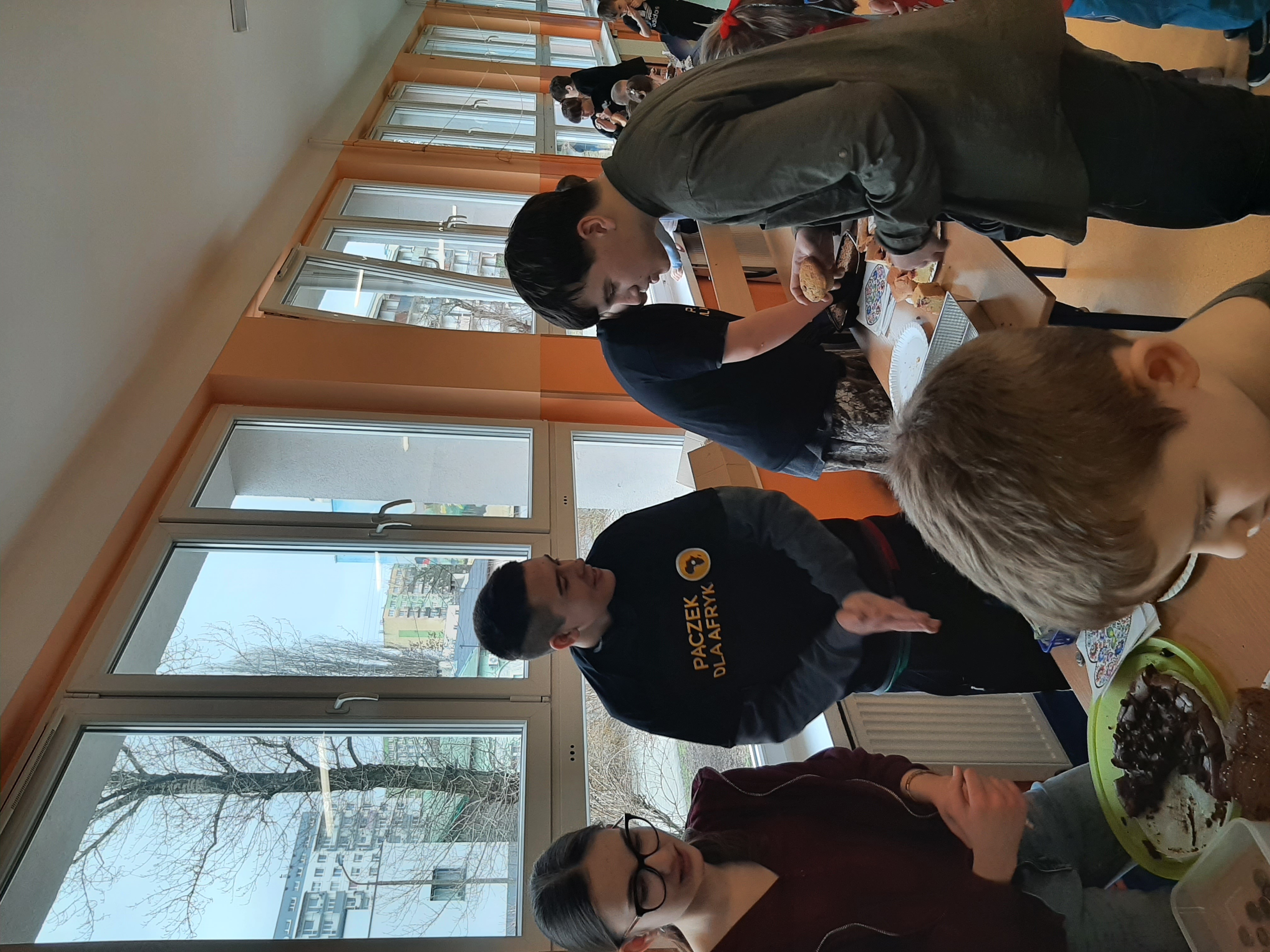W tym roku sprzedawaliśmy słodkości w dwóch terminach: klasy młodsze zapraszały na słodkie zakupy 17.02., a klasy starsze – tydzień później, 24.02. W tych dniach społeczność szkolna delektowała się ciastami, ciasteczkami, babeczkami oraz deserami przygotowanymi w pucharkach. I w ten sposób, zajadając pyszności, pomagaliśmy potrzebującym dzieciom z innego rejonu świata.