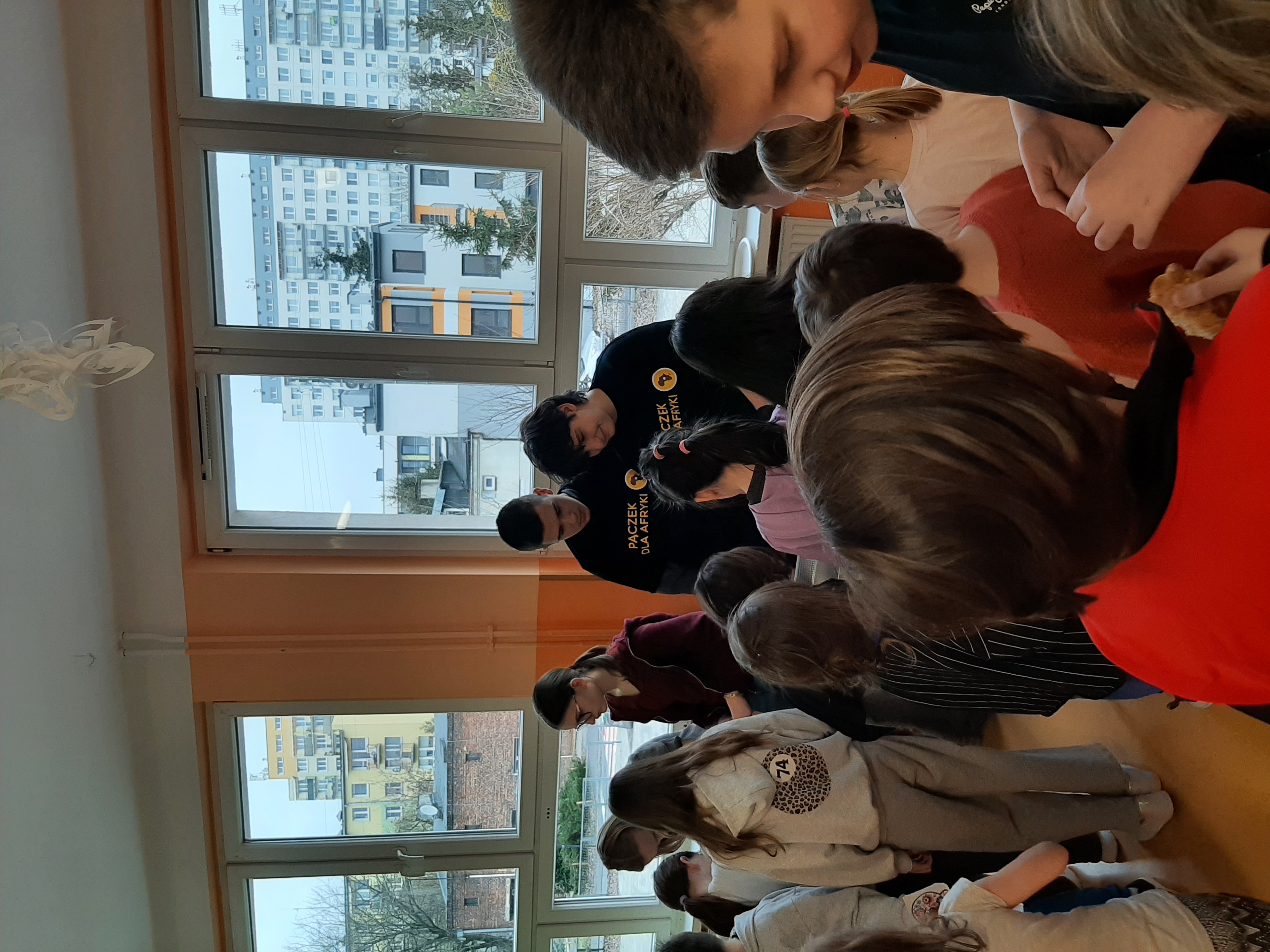 Nasza szkoła po raz drugi aktywnie uczestniczy w charytatywnej akcji „Wyślij pączka do Afryki”. Tegoroczna edycja prowadzona jest pod hasłem: POSIŁEK I SZKOŁA DLA DZIECIAKÓW. Głównym celem akcji jest pomoc 710 dzieciom w Republice Środkowoafrykańskiej, które potrzebują dożywienia. Dzieci chcą też chodzić do szkoły, ale wymaga to opłat, które przekraczają możliwości ich opiekunów. Utrzymanie jednego dziecka w szkole i zapewnienie mu ciepłych posiłków przez miesiąc kosztuje 30 zł (opłata za szkołę, ciepły posiłek, mundurek i wyprawka).