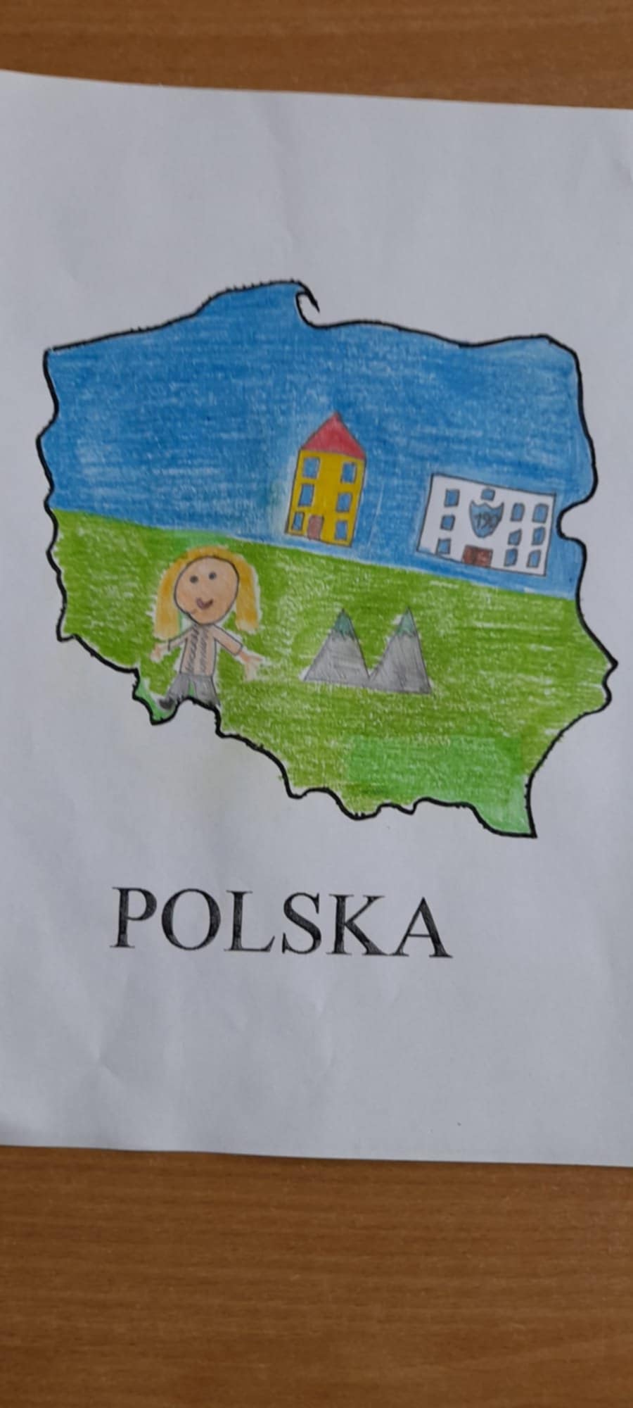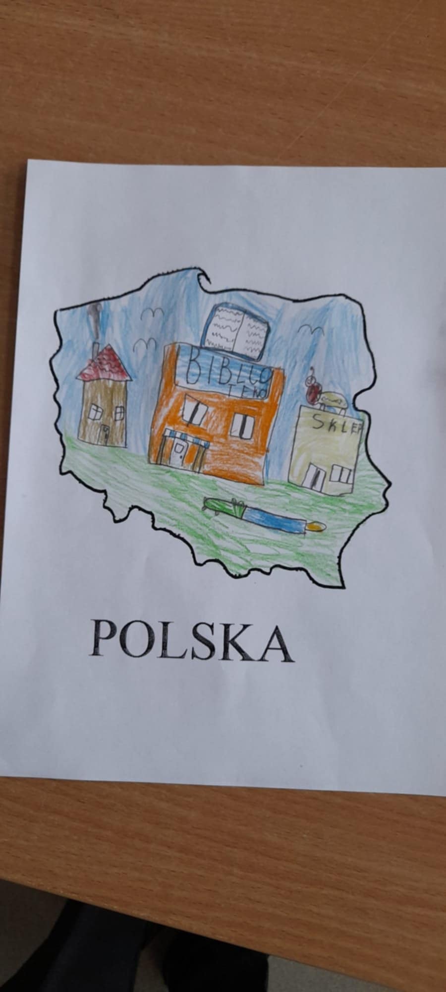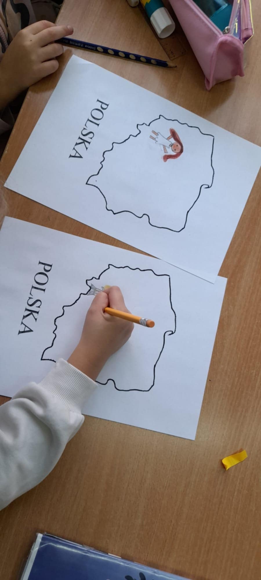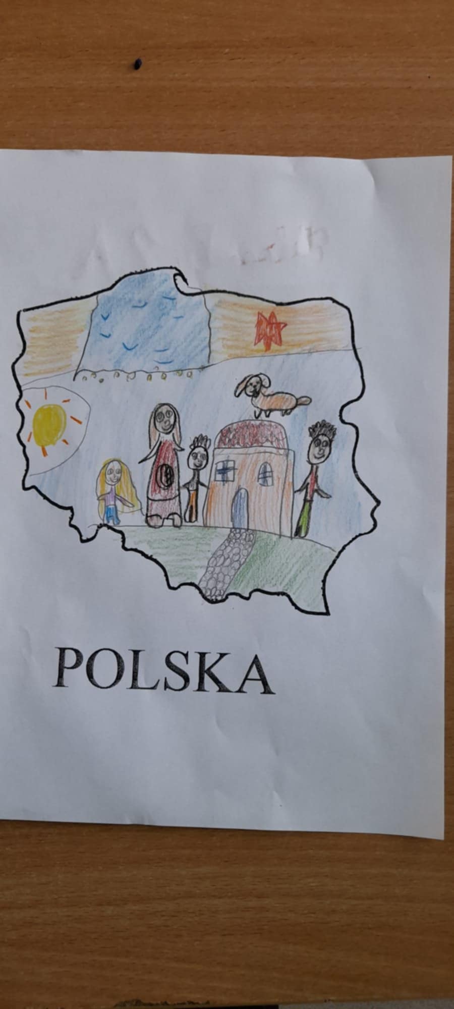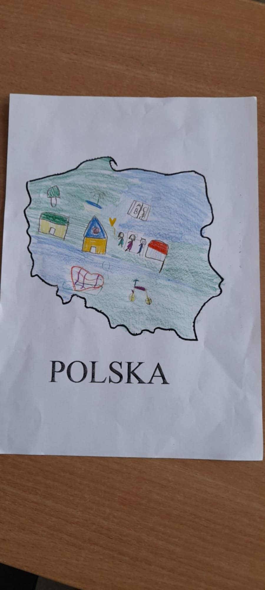 Dzisiaj uczniowie klasy 1a i 2a wypełniali kontur Polski, odpowiadając w ten sposób "Za co jestem wdzięczny Polsce". Z prac została wykonana dekoracja na korytarzu szkolnym.