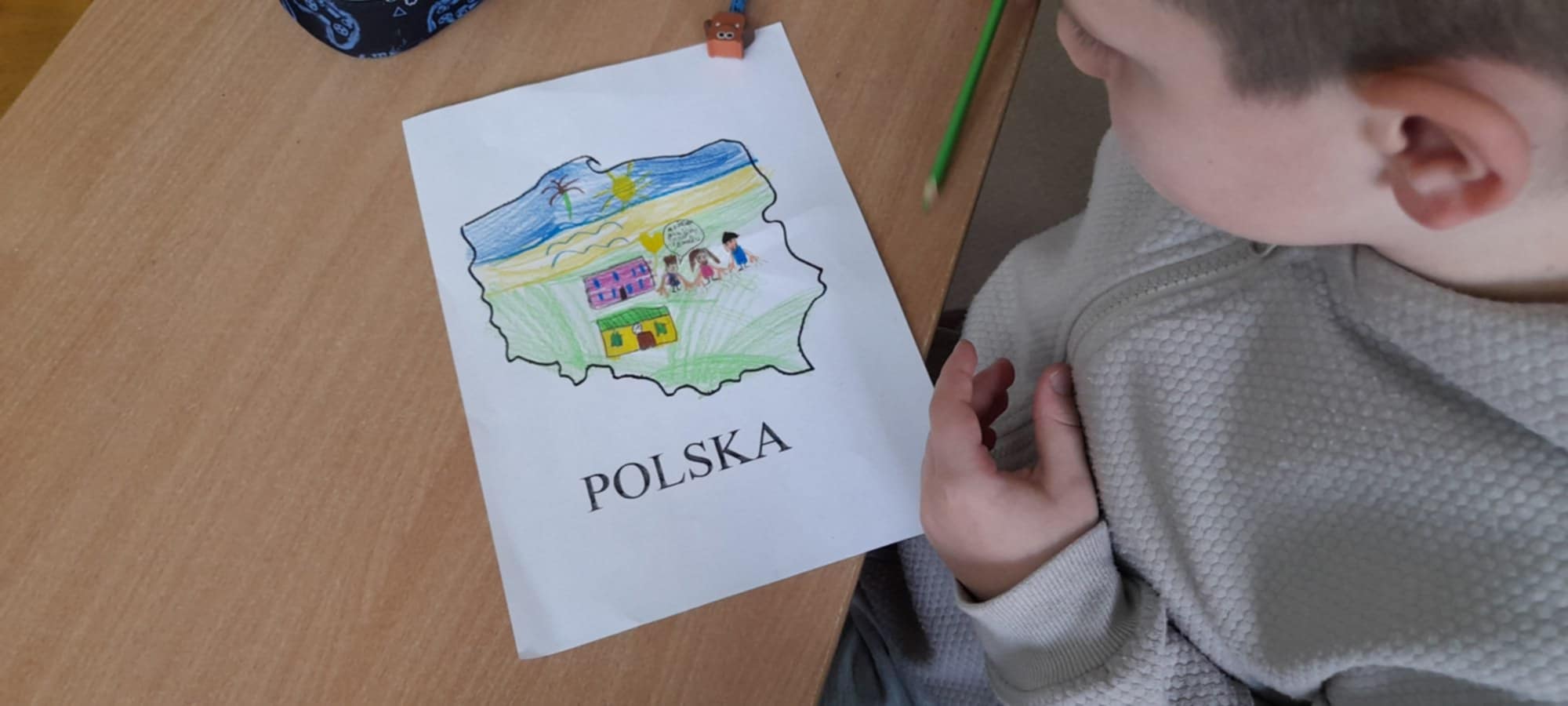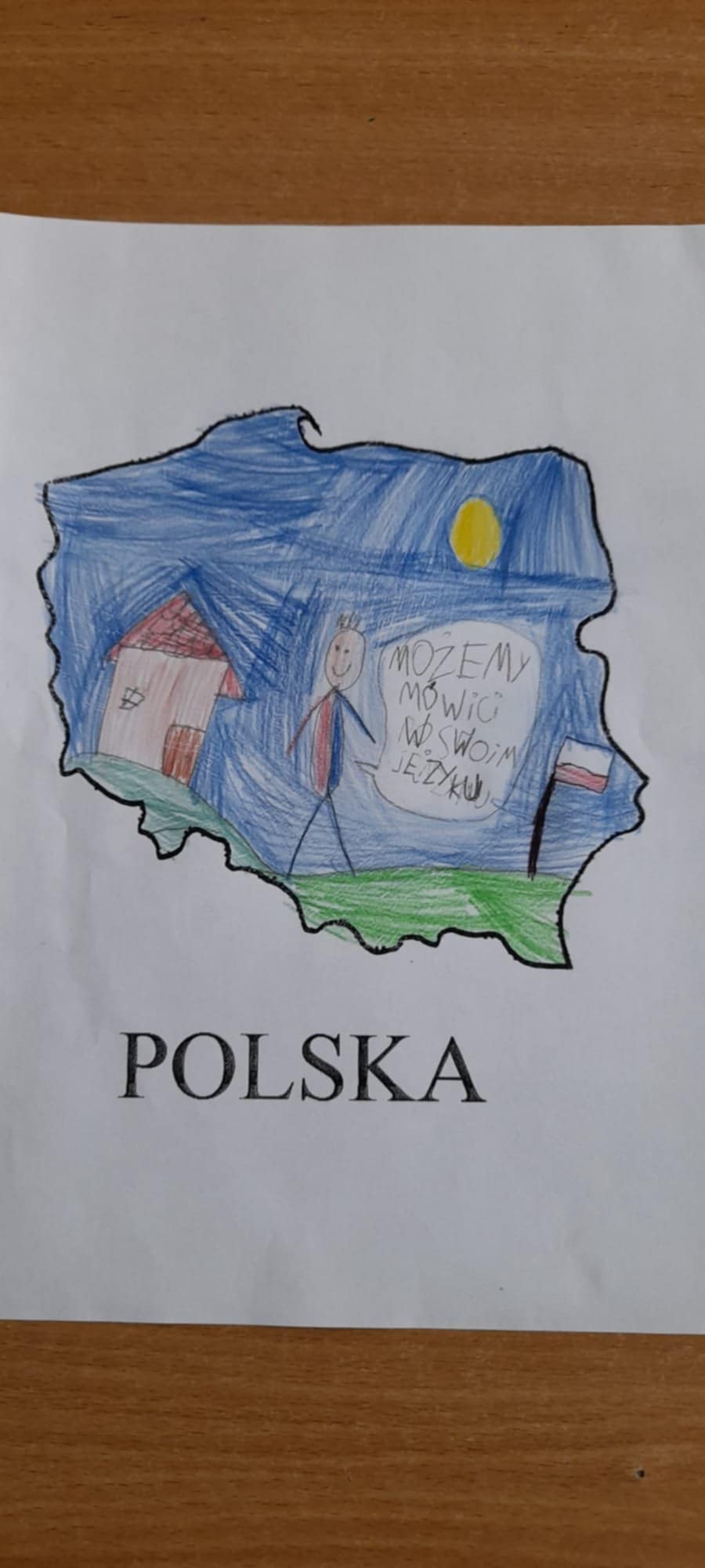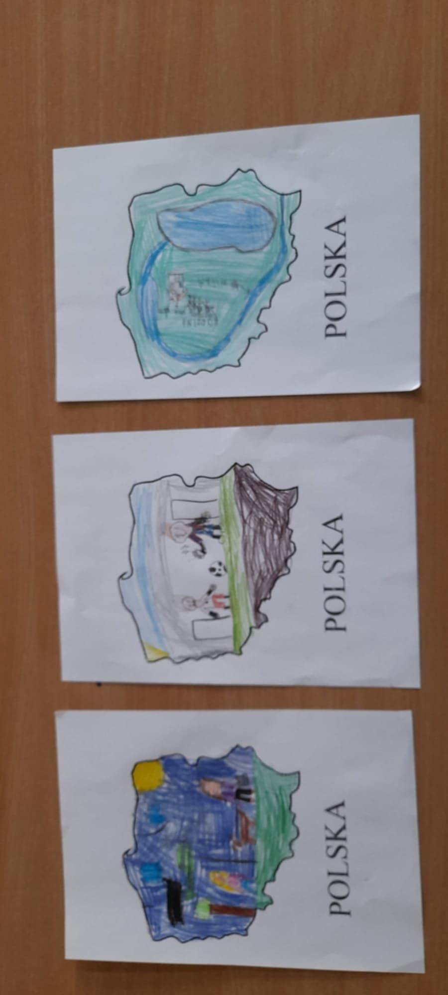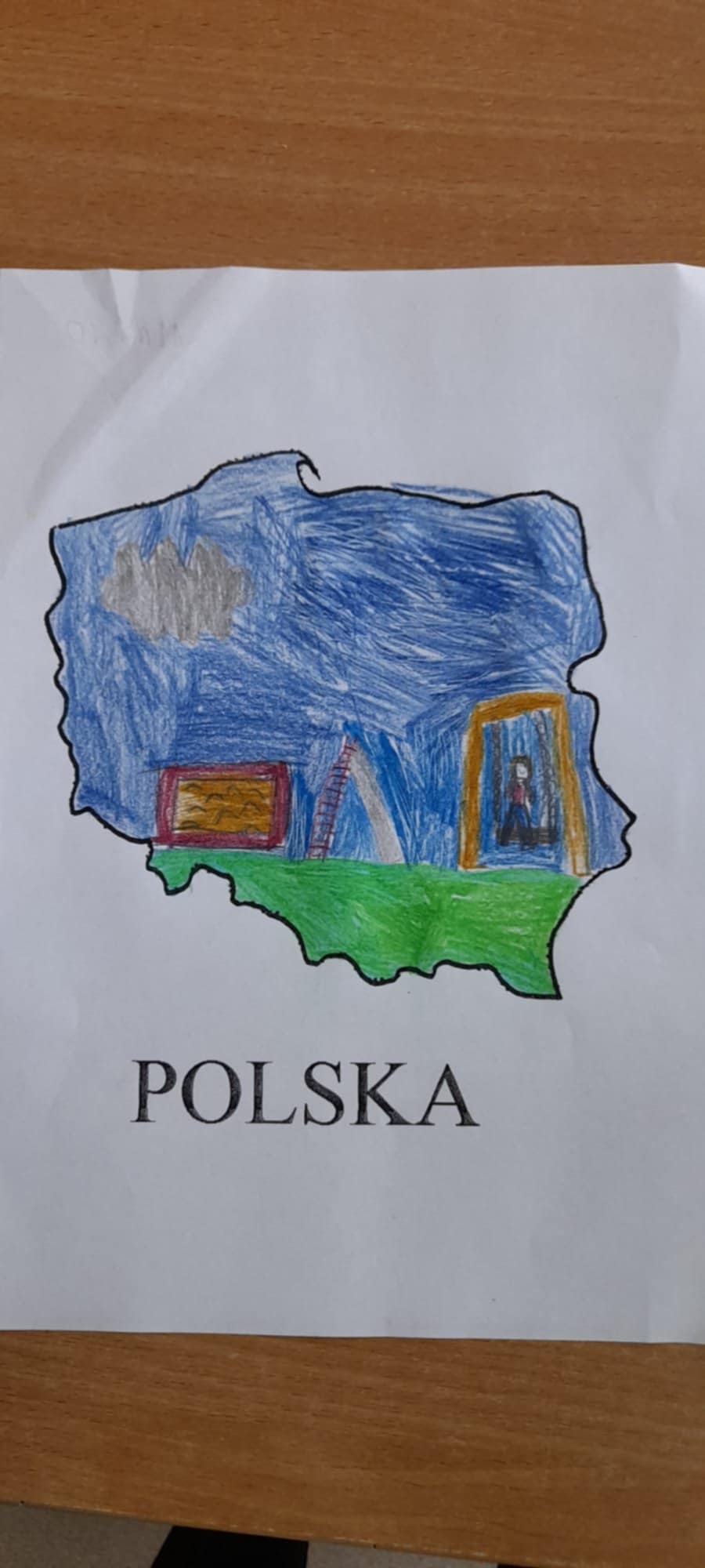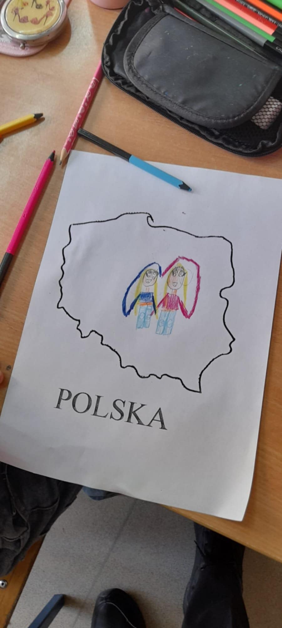 Dzisiaj uczniowie klasy 1a i 2a wypełniali kontur Polski, odpowiadając w ten sposób "Za co jestem wdzięczny Polsce". Z prac została wykonana dekoracja na korytarzu szkolnym.