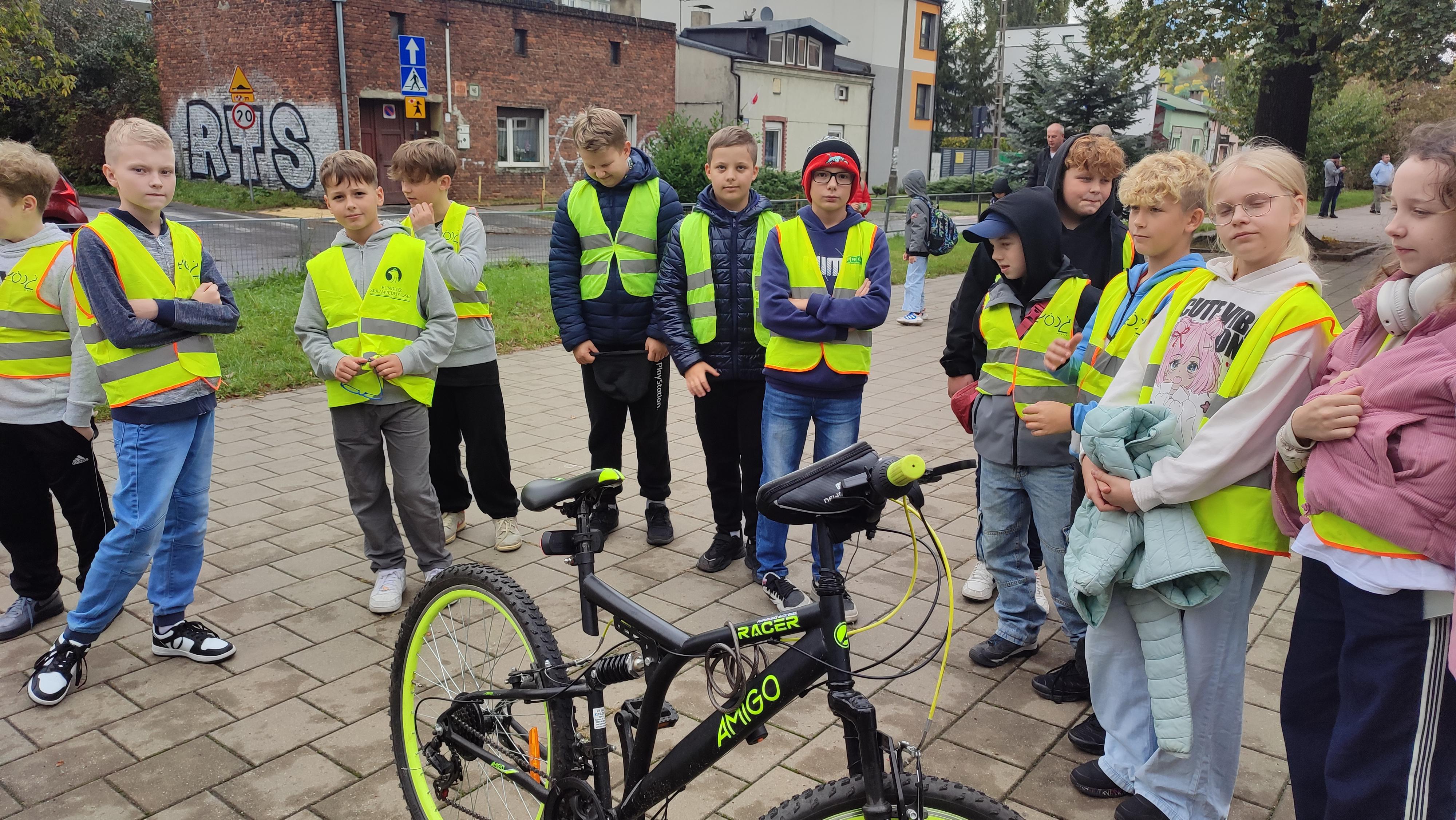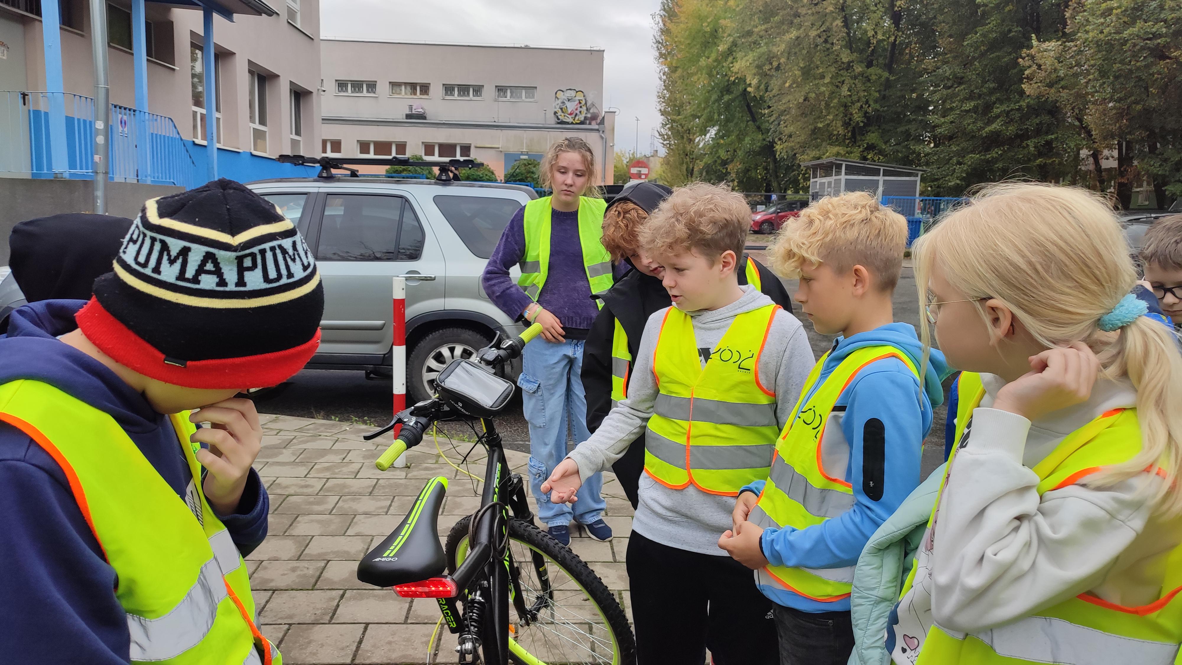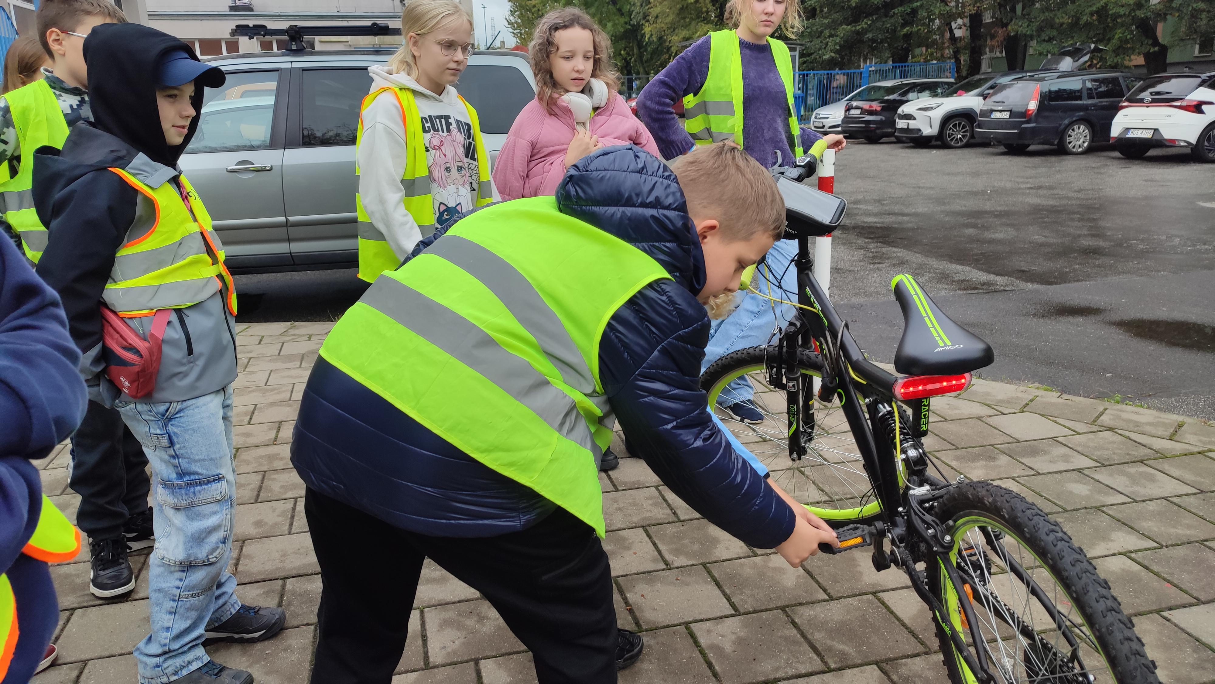Kolejne zajęcia Przygotowanie do Karty rowerowej odbyły się nie w klasie lecz przed szkołą. Uczniowie omawiali budowę roweru - układy oraz ich elementy. Szczególną uwagę zwracali na układ hamulcowy i oświetleniowy. To one decydują o bezpiecznym poruszaniu się po drogach. Uczestnicy zajęć mieli też możliwość zaobserwowania w jaki sposób działają szczęki hamulcowe i przerzutki. Kolejnym omawianym i przedyskutowanym przez uczniów zagadnieniem były elementy obowiązkowego i dodatkowego wyposażenia roweru. Wiedza przyswajana dzięki takiej metodzie zostaje na długo w pamięci i na pewno przyda się przyszłym rowerzystom.