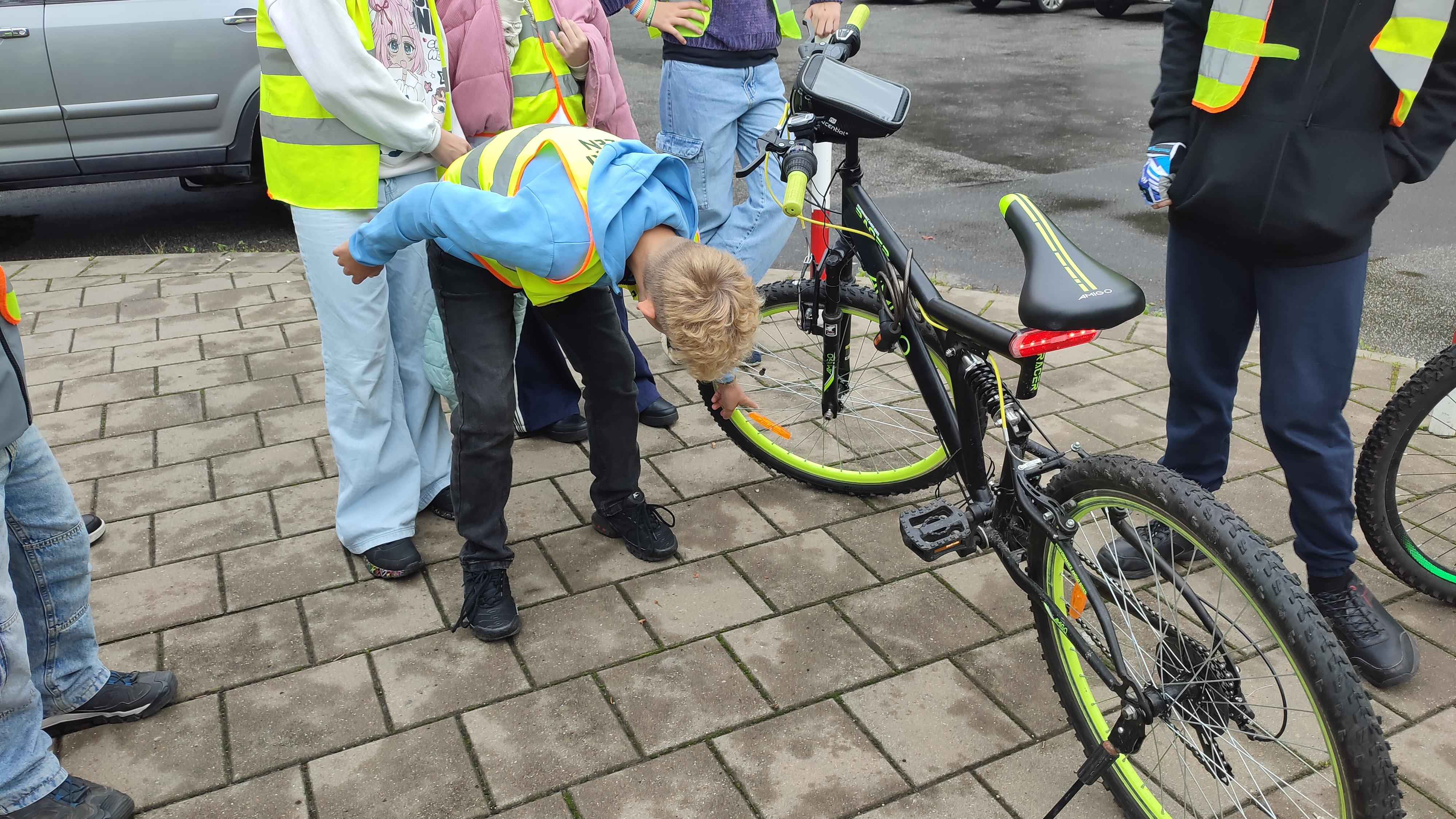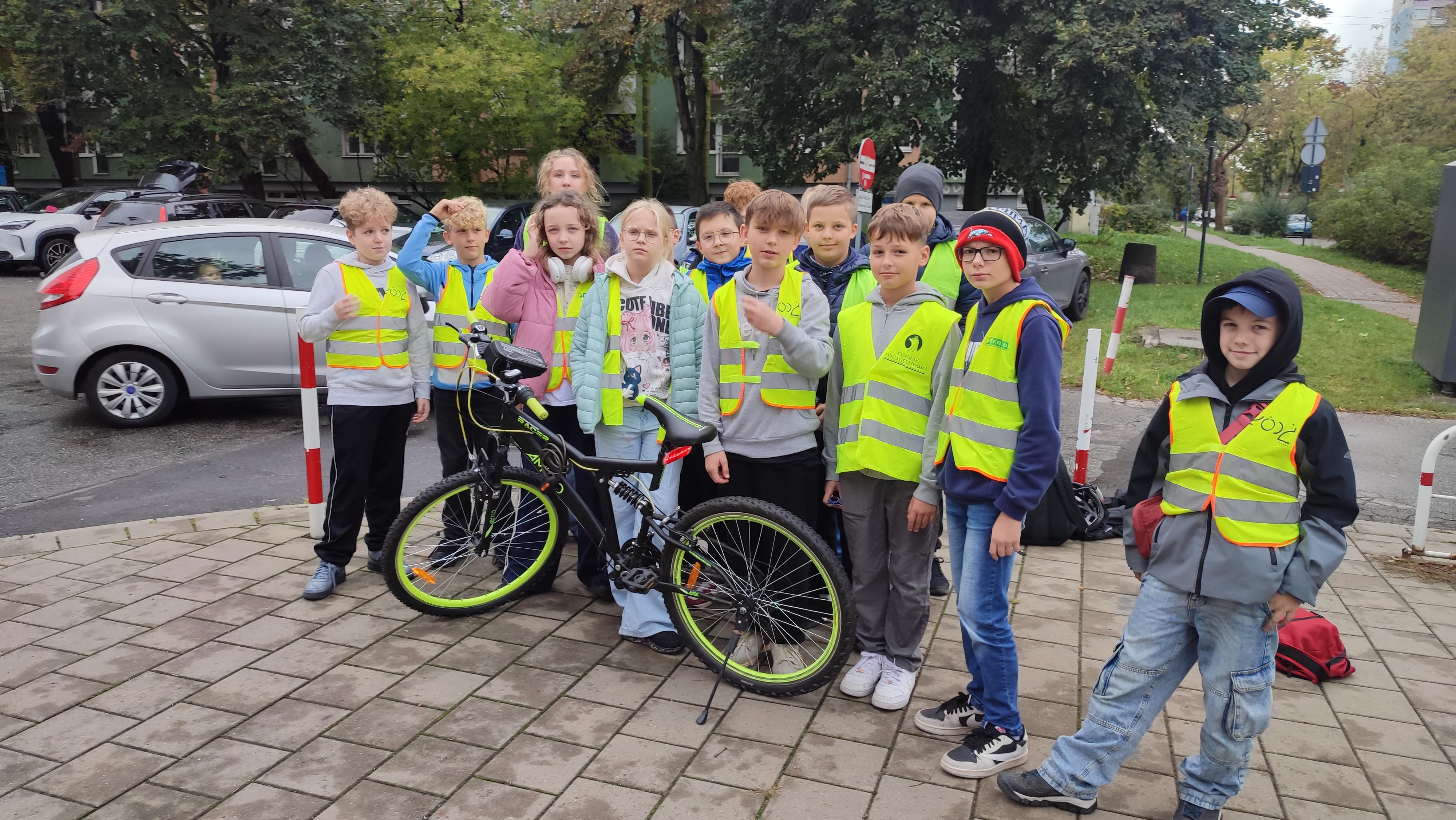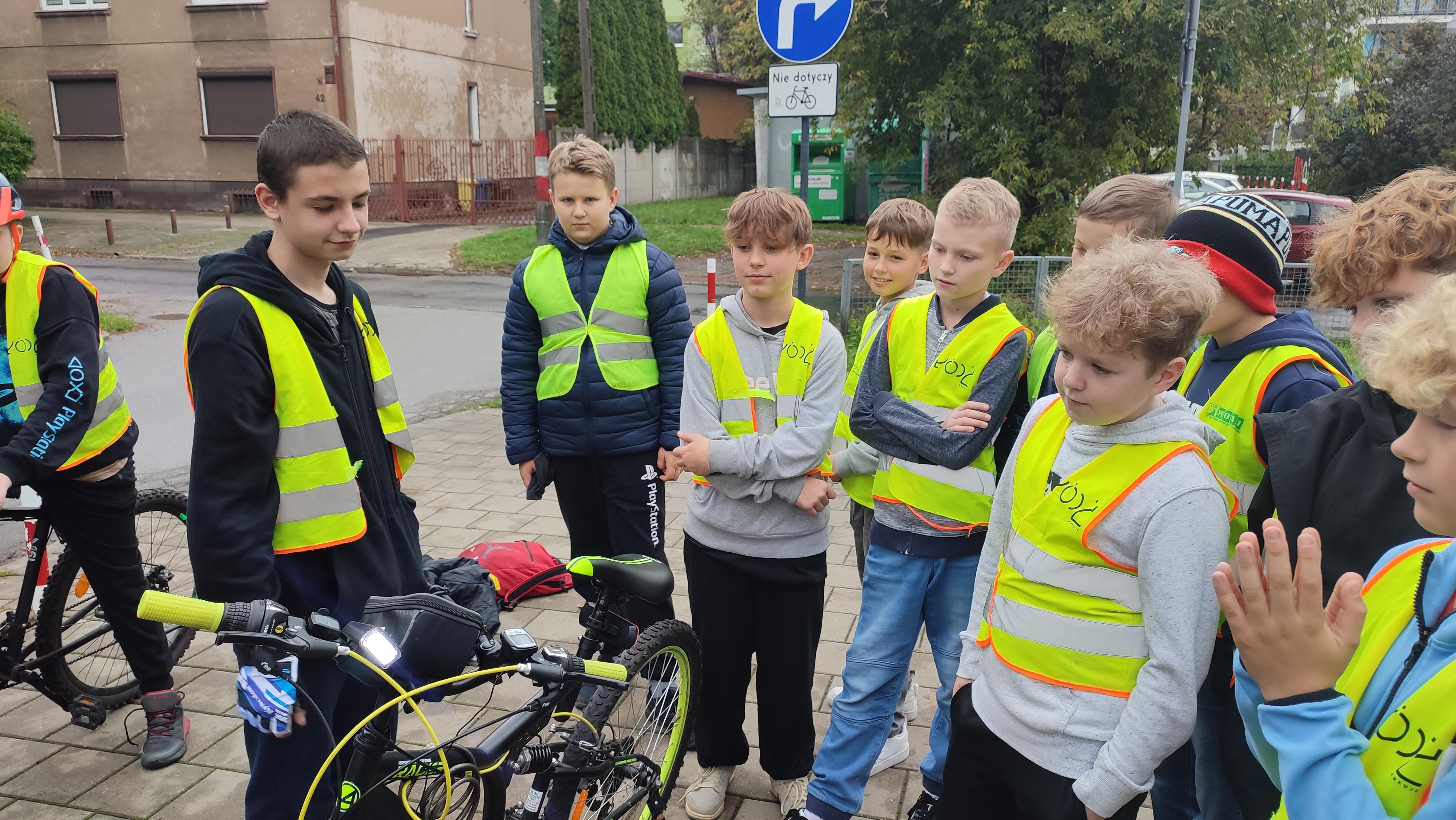 Kolejne zajęcia Przygotowanie do Karty rowerowej odbyły się nie w klasie lecz przed szkołą. Uczniowie omawiali budowę roweru - układy oraz ich elementy. Szczególną uwagę zwracali na układ hamulcowy i oświetleniowy. To one decydują o bezpiecznym poruszaniu się po drogach. Uczestnicy zajęć mieli też możliwość zaobserwowania w jaki sposób działają szczęki hamulcowe i przerzutki. Kolejnym omawianym i przedyskutowanym przez uczniów zagadnieniem były elementy obowiązkowego i dodatkowego wyposażenia roweru. Wiedza przyswajana dzięki takiej metodzie zostaje na długo w pamięci i na pewno przyda się przyszłym rowerzystom.